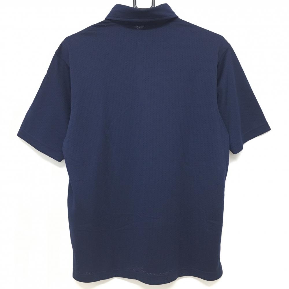 【超美品】ツアーステージ 半袖ポロシャツ ネイビー ロゴ赤 パンチング メッシュ メンズ M ゴルフウェア TOURSTAGE