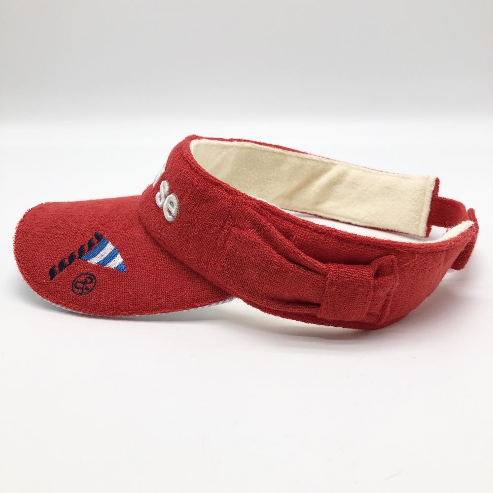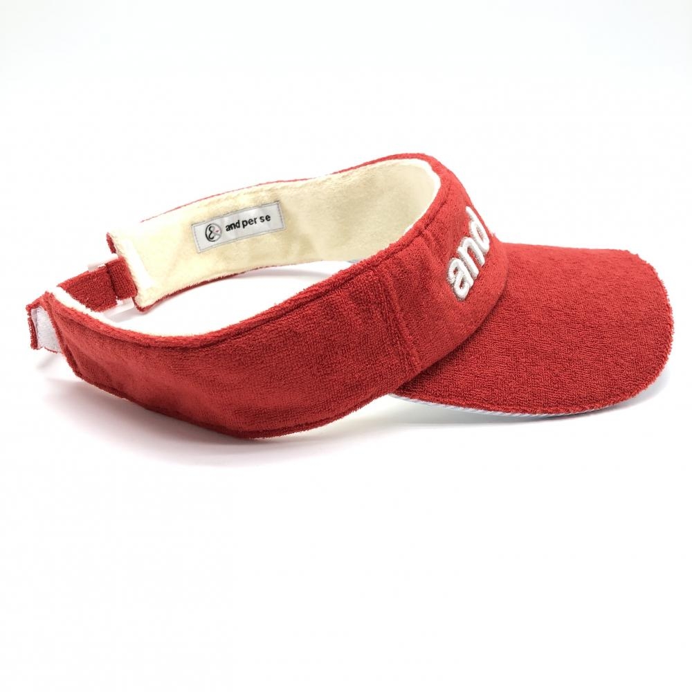 アンパスィ サンバイザー レッド×白 パイル地 サイドリボン レディース ゴルフウェア and per se