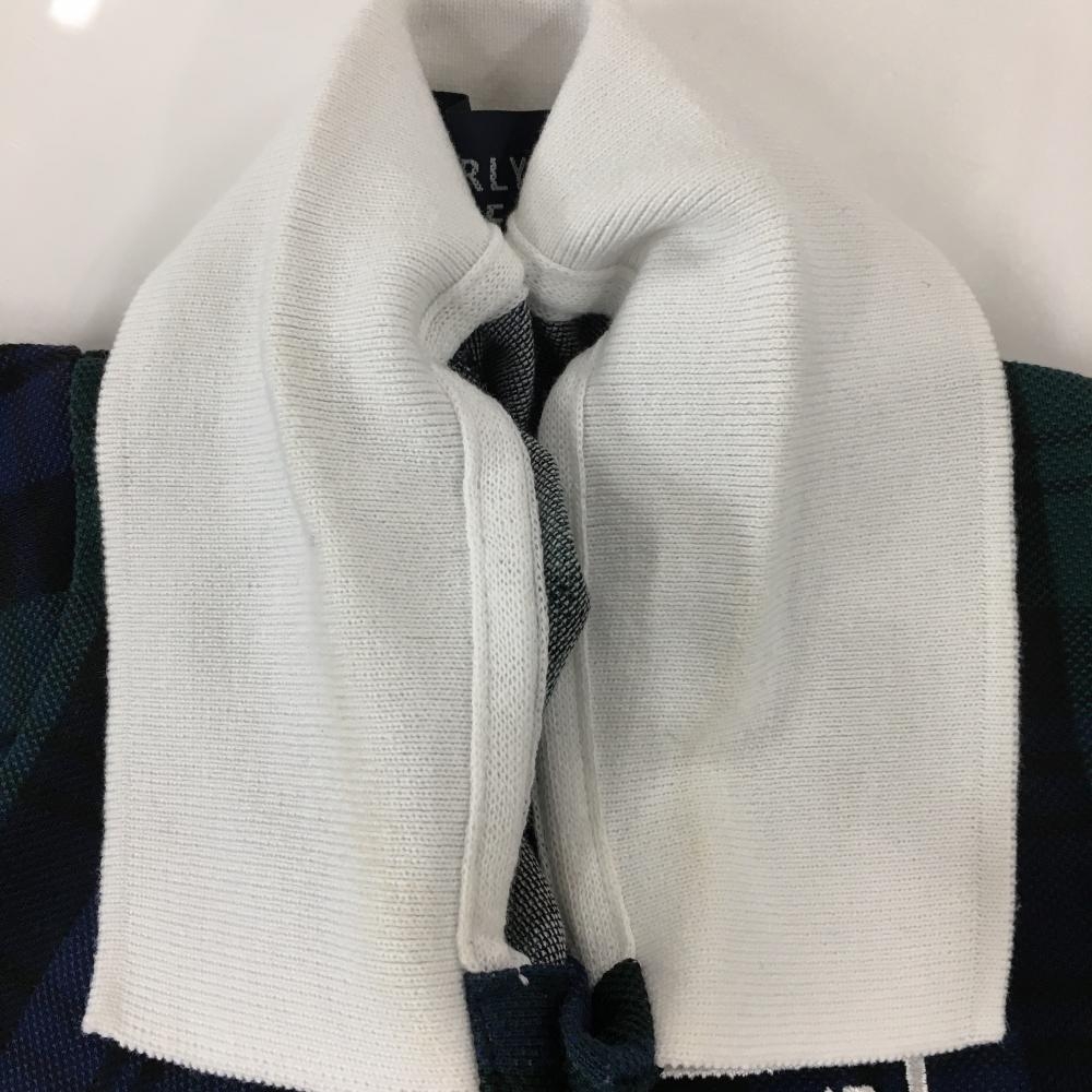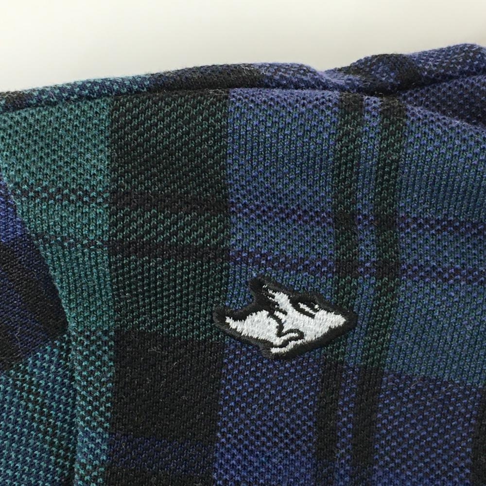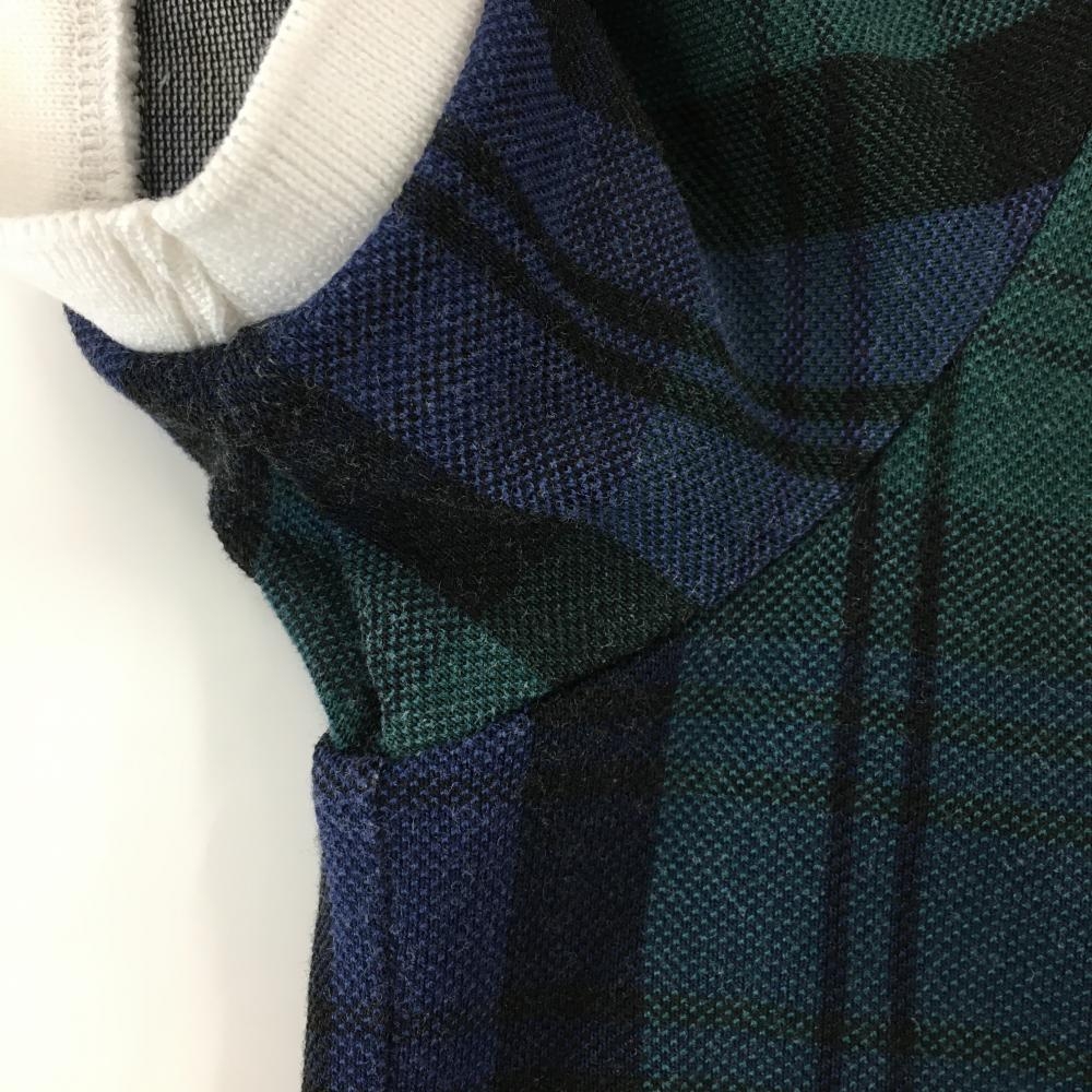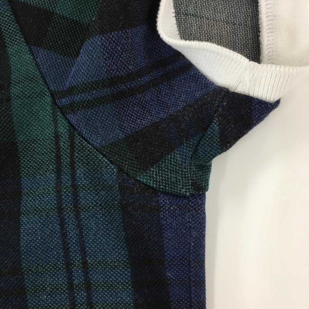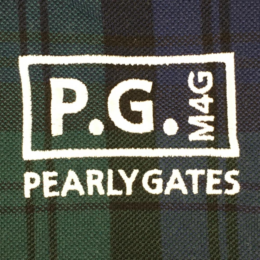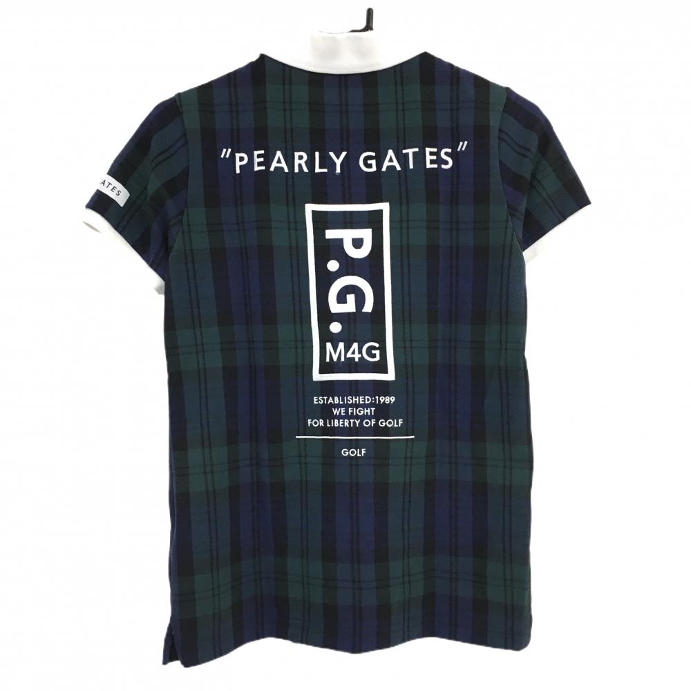 パーリーゲイツ 半袖ポロシャツ ネイビー×グリーン チェック 背面ビッグロゴ レディース 1(M) ゴルフウェア 2023年モデル PEARLY GATES