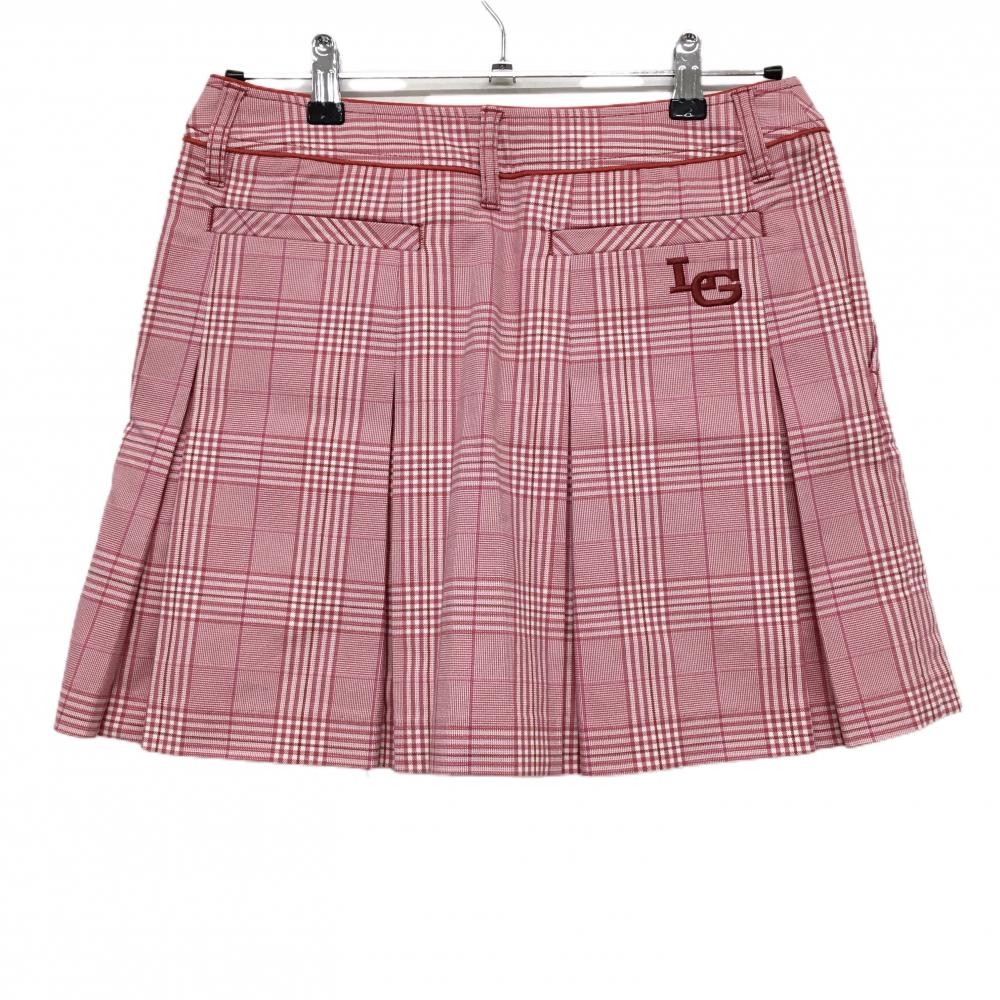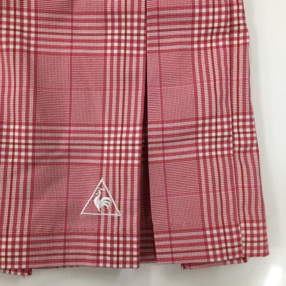 【超美品】ルコック スカート ピンク×レッド チェック ボックスプリーツ レディース 11 ゴルフウェア le coq sportif