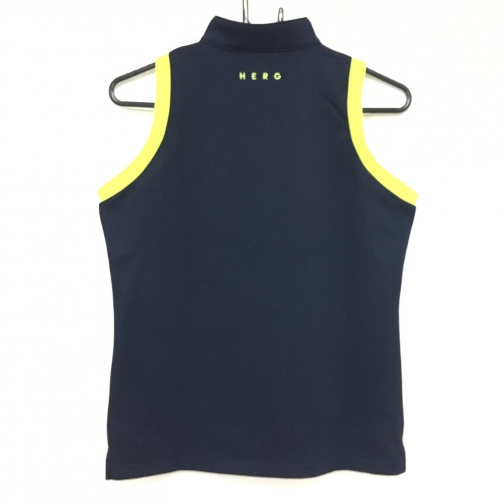 【超美品】エルグワン ノースリーブハイネックシャツ ネイビー×イエロー シリコンワッペン レディース 2 ゴルフウェア HERG1