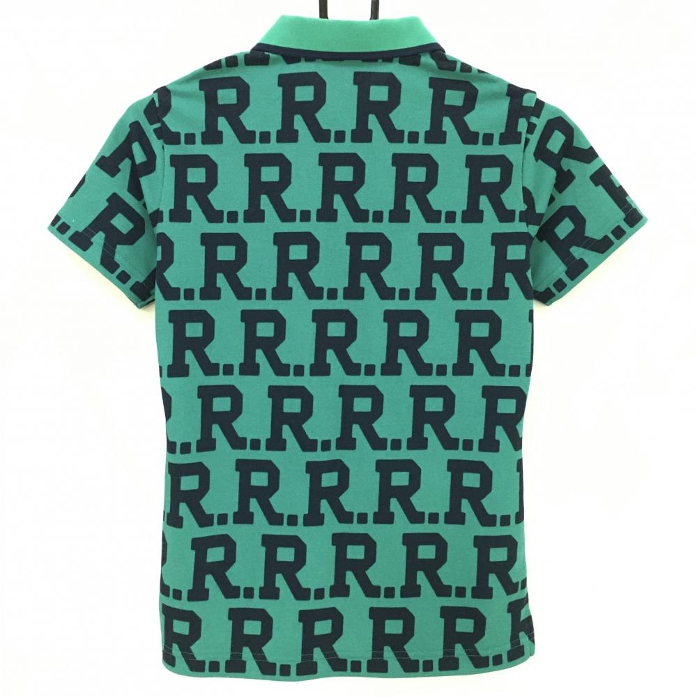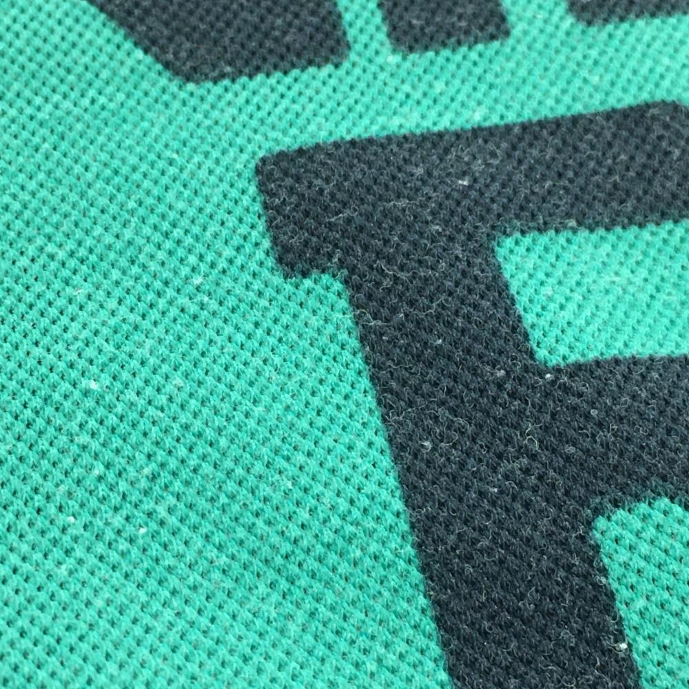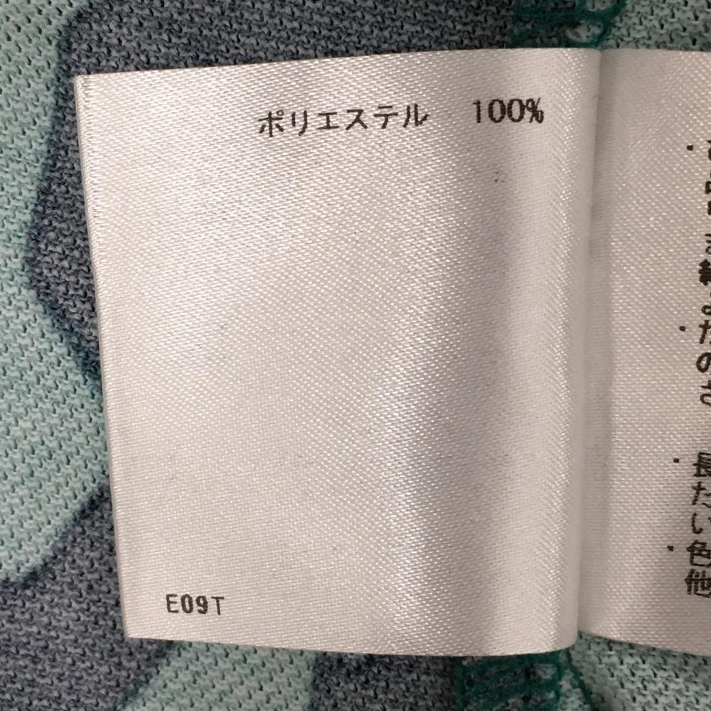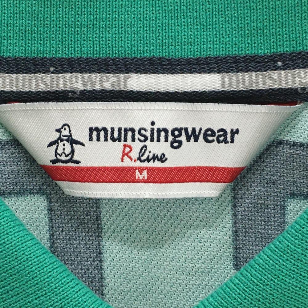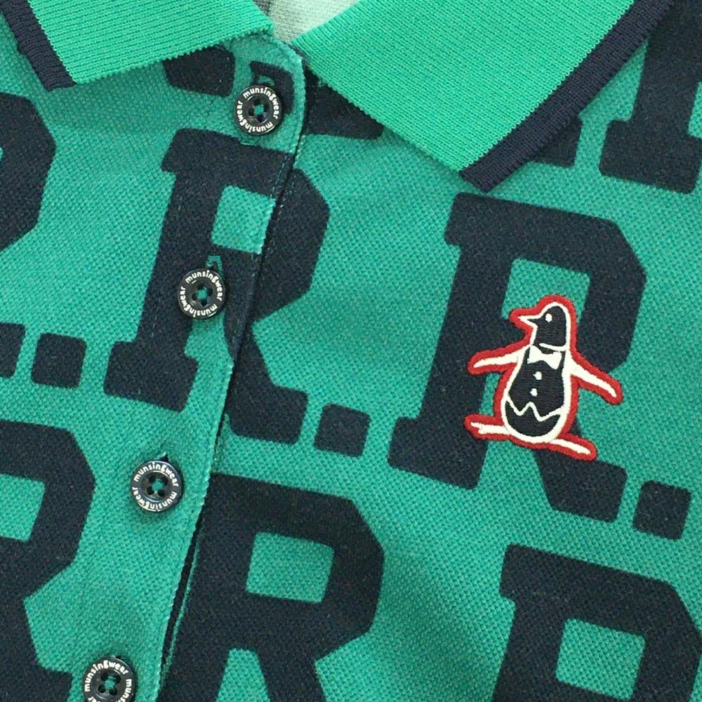 【美品】マンシングウェア 半袖ポロシャツ グリーン×ネイビー アルファベット柄 ペンギン刺しゅう レディース M ゴルフウェア Munsingwear