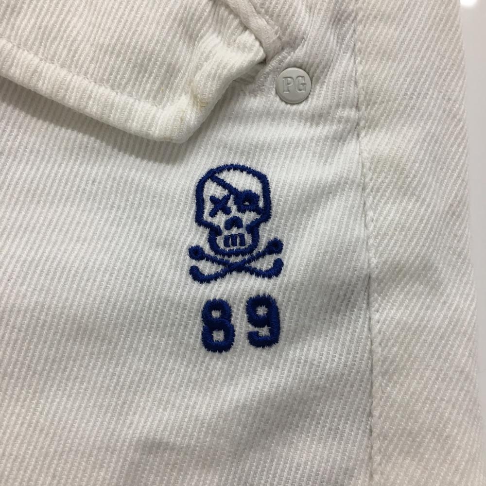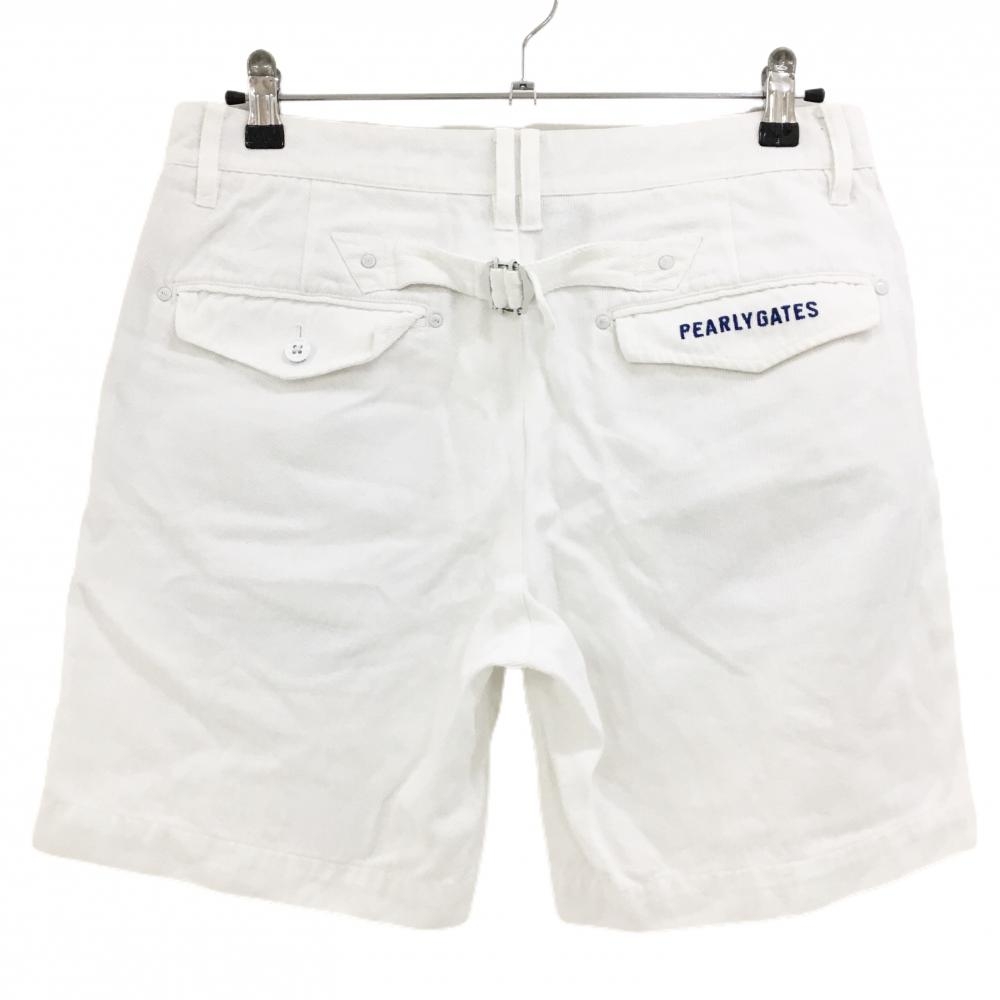 パーリーゲイツ ハーフパンツ 白 麻混 ウエスト裏斜めストライプ スカル メンズ 4(M) ゴルフウェア PEARLY GATES