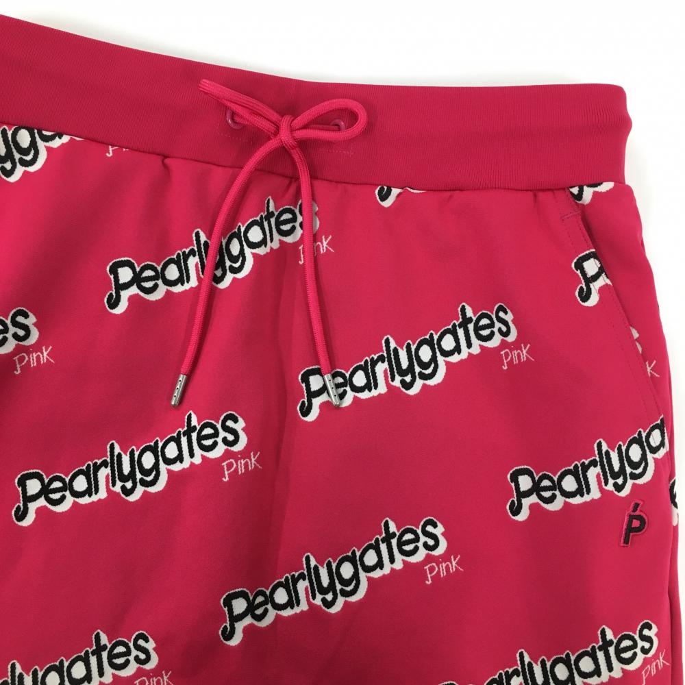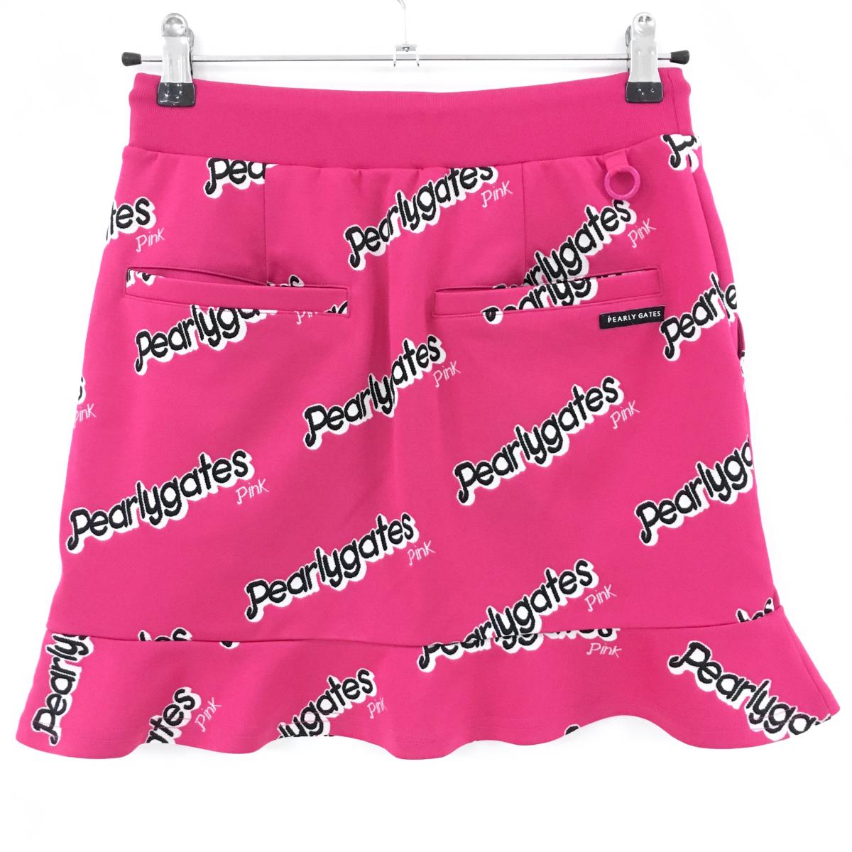 【超美品】パーリーゲイツ スカート ピンク×黒×白 ロゴ総柄 レディース 0(S) ゴルフウェア 2023年モデル PEARLY GATES