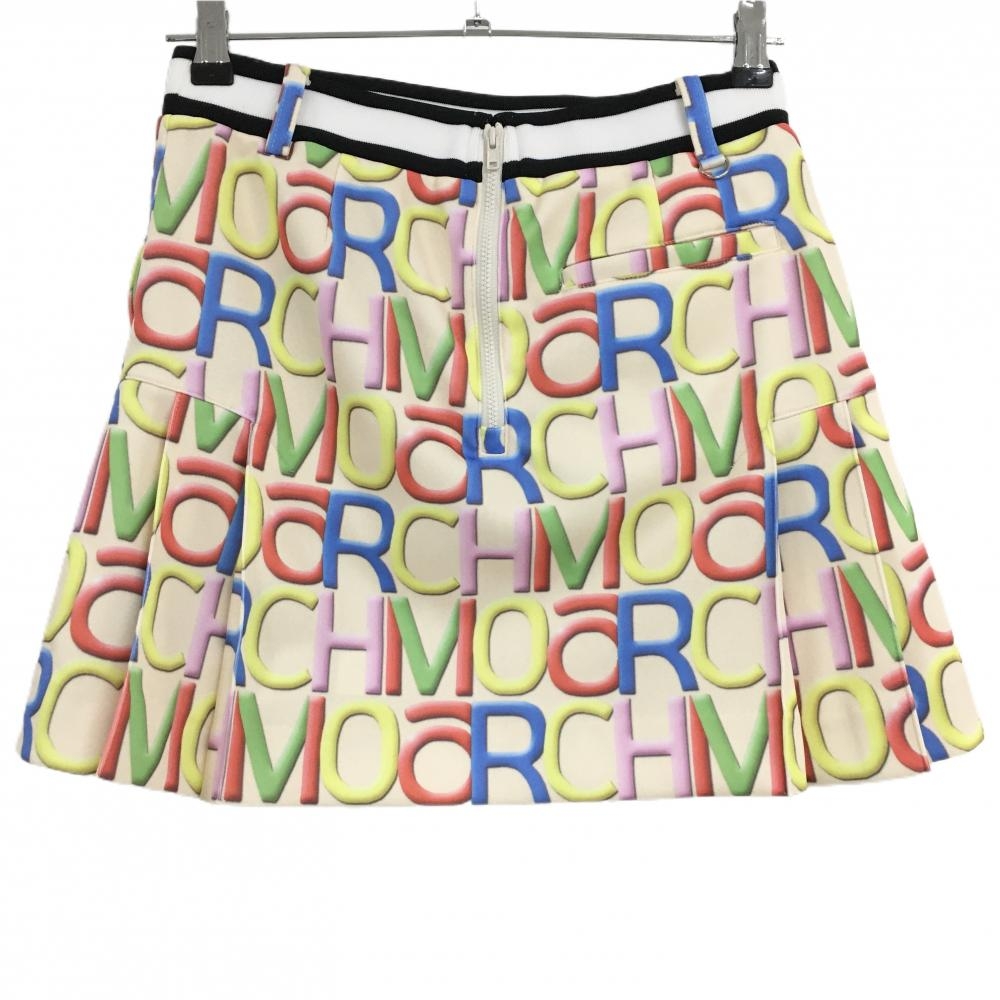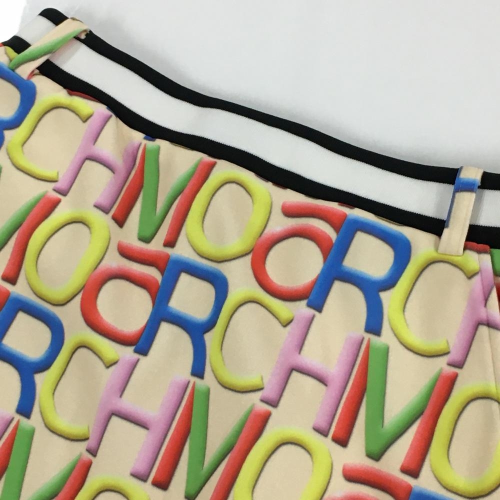 【超美品】アルチビオ スカート ベージュ×マルチカラー 英字柄 サイドプリーツ ウエストゴム レディース 36(S) ゴルフウェア archivio