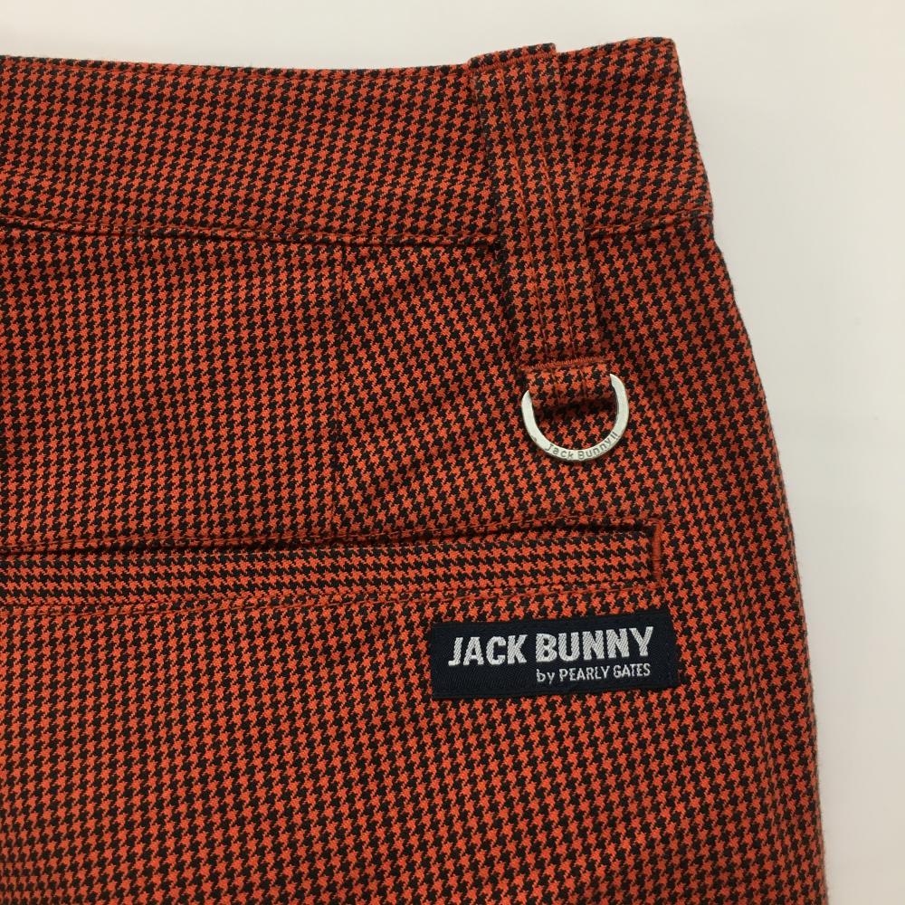 【美品】ジャックバニー パンツ オレンジ×黒 千鳥格子柄 バックロゴ レディース 0(S) ゴルフウェア Jack Bunny