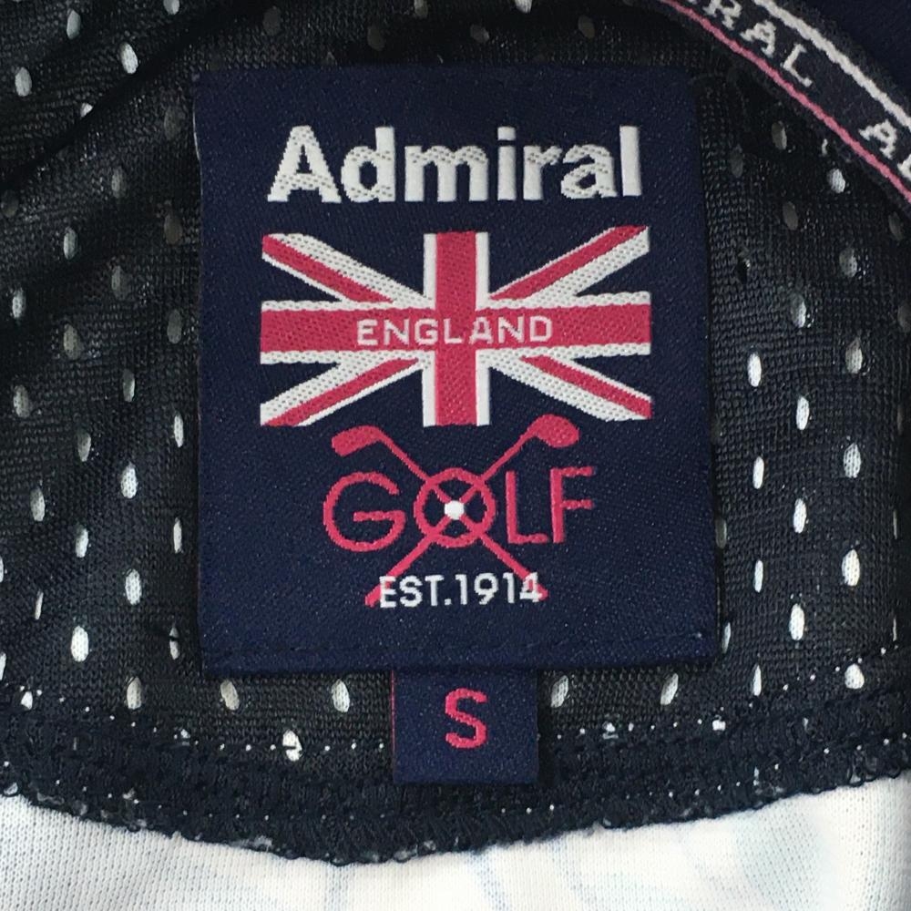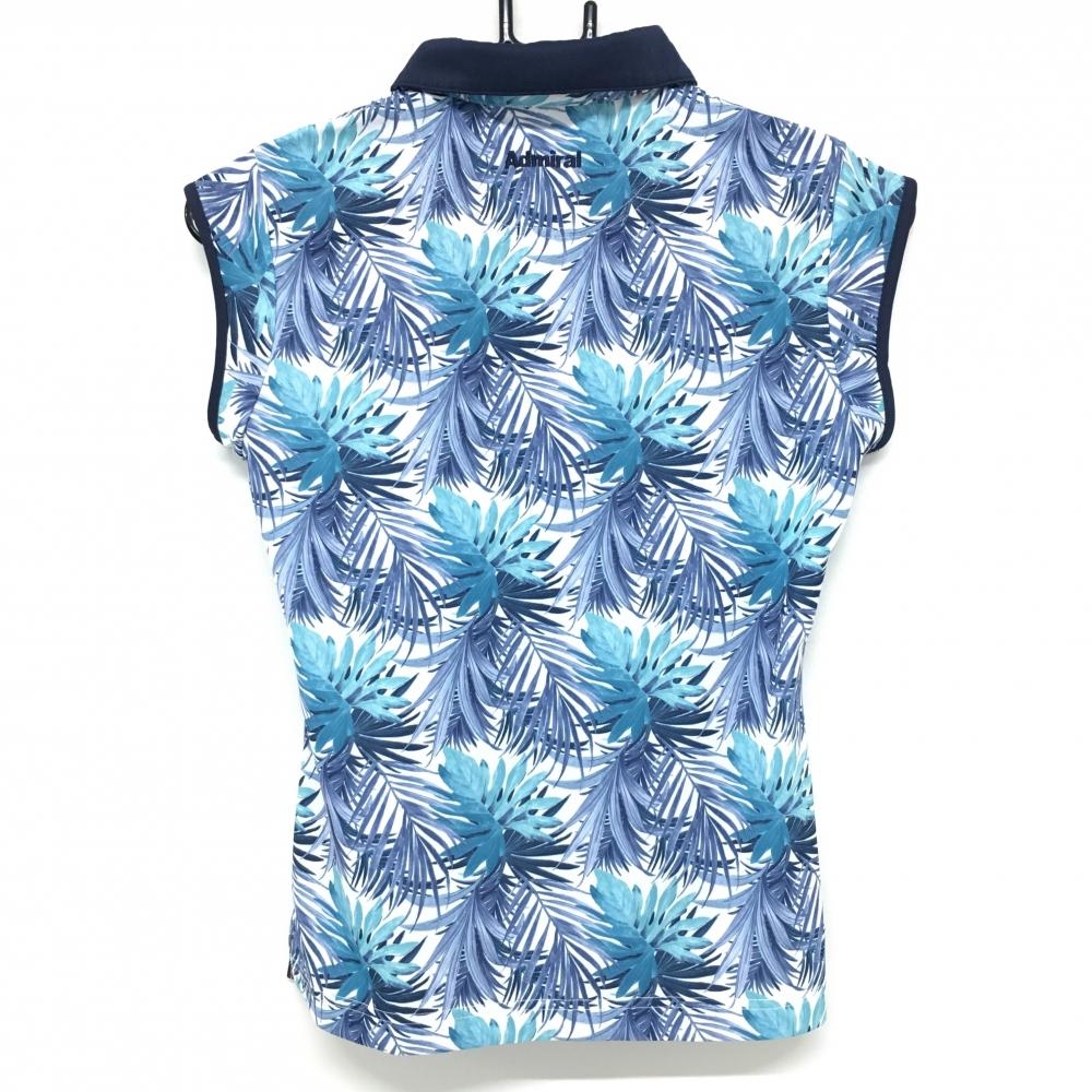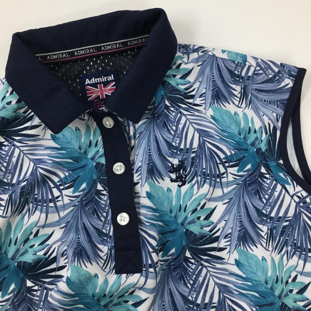 【超美品】アドミラル ノースリーブポロシャツ 白×ネイビー リーフ柄 裏一部メッシュ レディース S ゴルフウェア Admiral