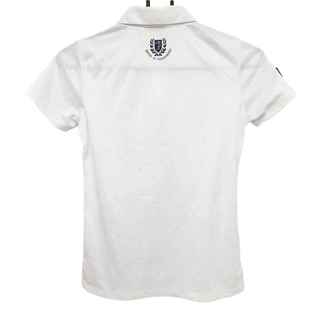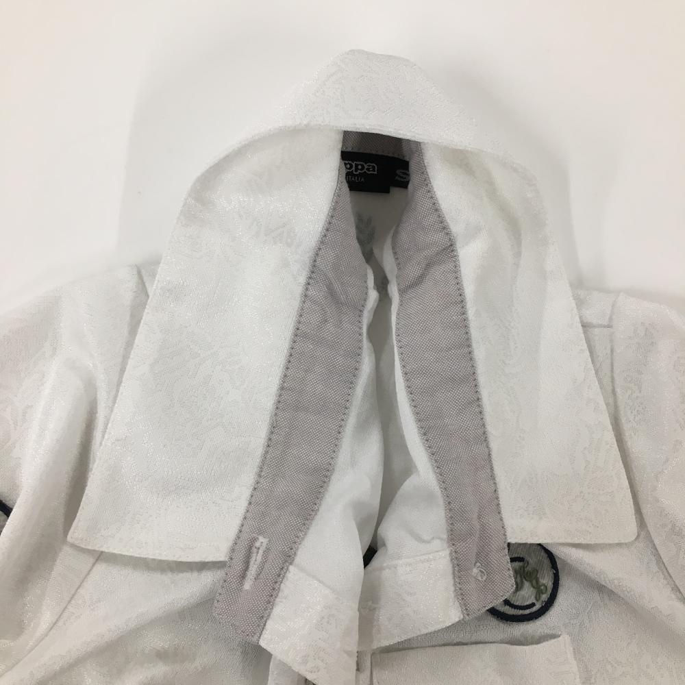 【美品】カッパ 半袖ポロシャツ 白 総柄地模様 ワッペン レディース S ゴルフウェア Kappa