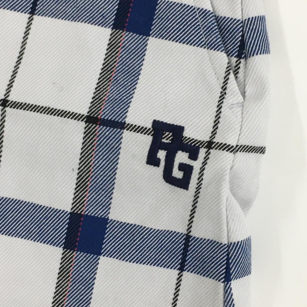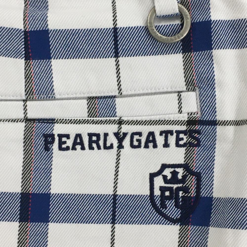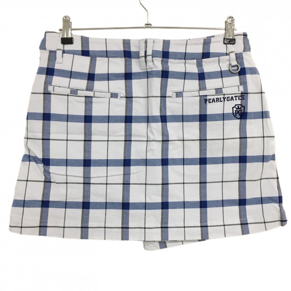 【美品】パーリーゲイツ スカート 白×ブルー×黒 チェック 30周年 裏地ニコちゃん ストレッチ レディース 2(L) ゴルフウェア PEARLY GATES