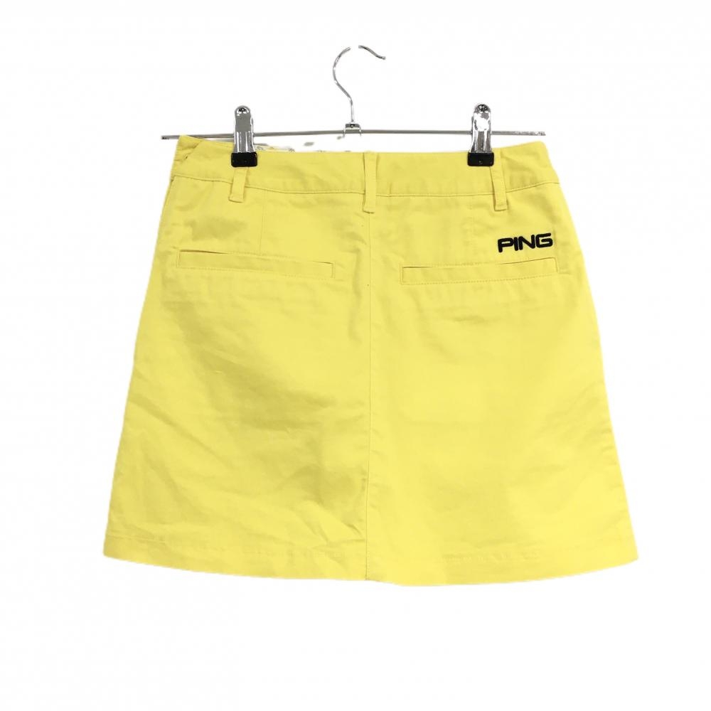 【美品】ピン スカート イエロー ロゴネイビー レディース SS ゴルフウェア PING
