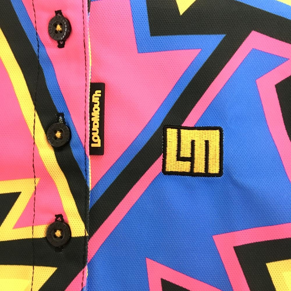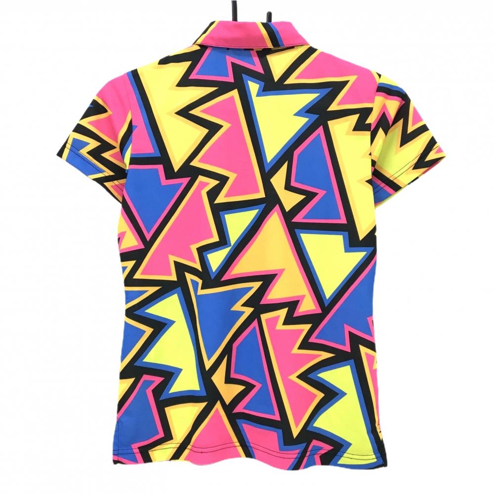 【超美品】ラウドマウス 半袖ポロシャツ 蛍光ピンク×蛍光イエロー 総柄 ネオンクリスタル レディース M ゴルフウェア LOUDMOUTH
