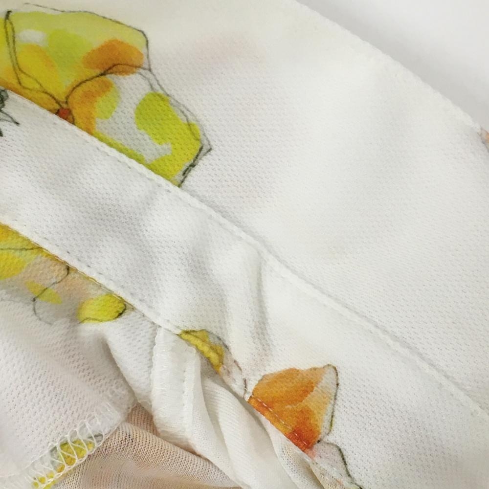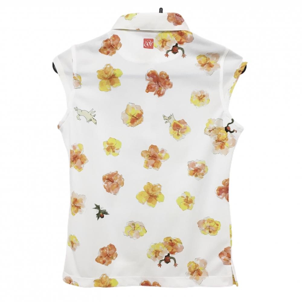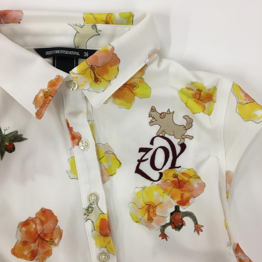 【美品】ゾーイ ノースリーブポロシャツ 白×レッド×イエロー 花柄 ドッグ柄 レディース 36(S) ゴルフウェア ZOY