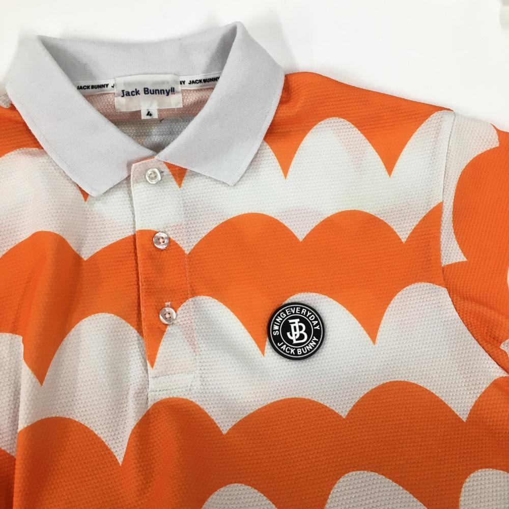 【美品】ジャックバニー 半袖ポロシャツ オレンジ×白 総柄 メンズ 4(M) ゴルフウェア Jack Bunny