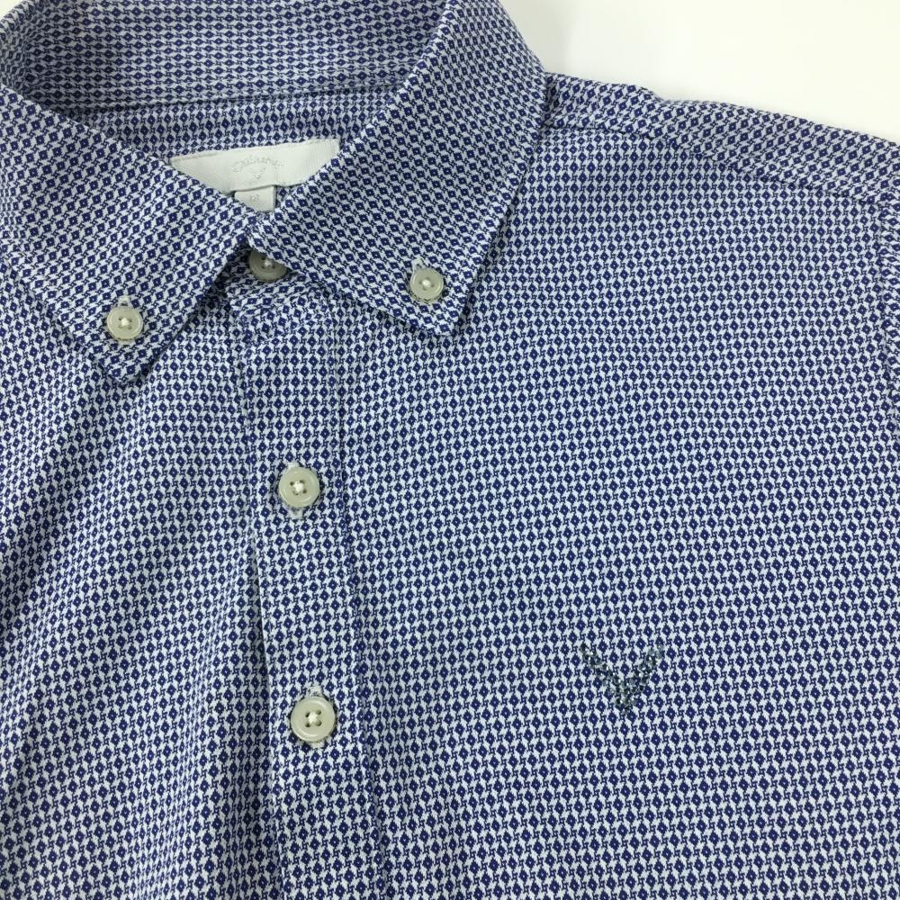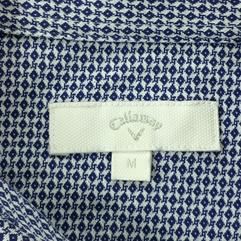 キャロウェイ 半袖ポロシャツ ネイビー×白 総柄 ボタンダウン メンズ M ゴルフウェア Callaway