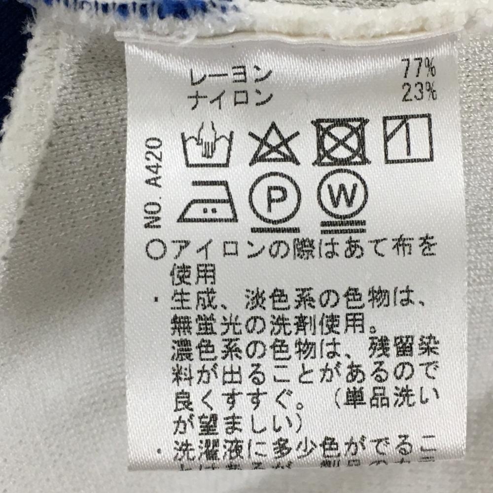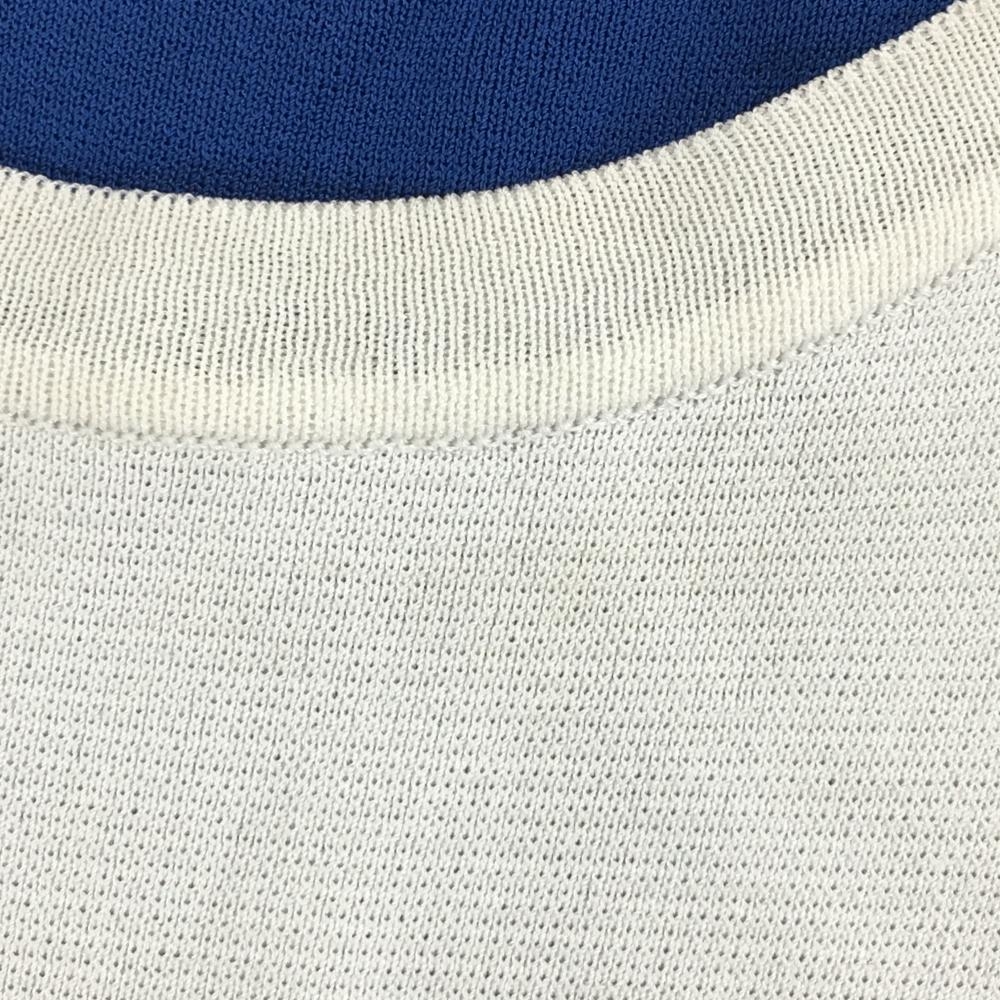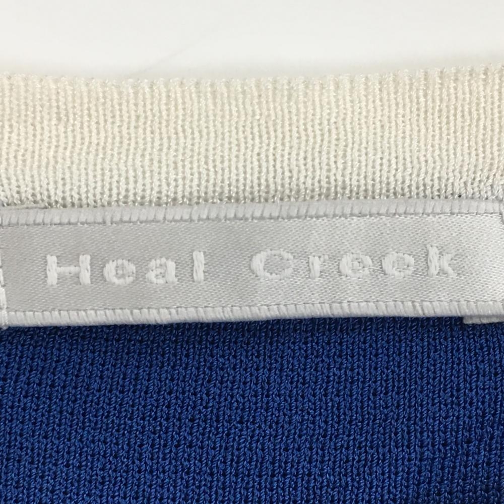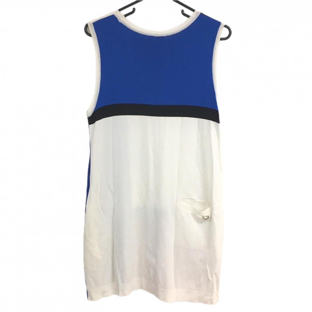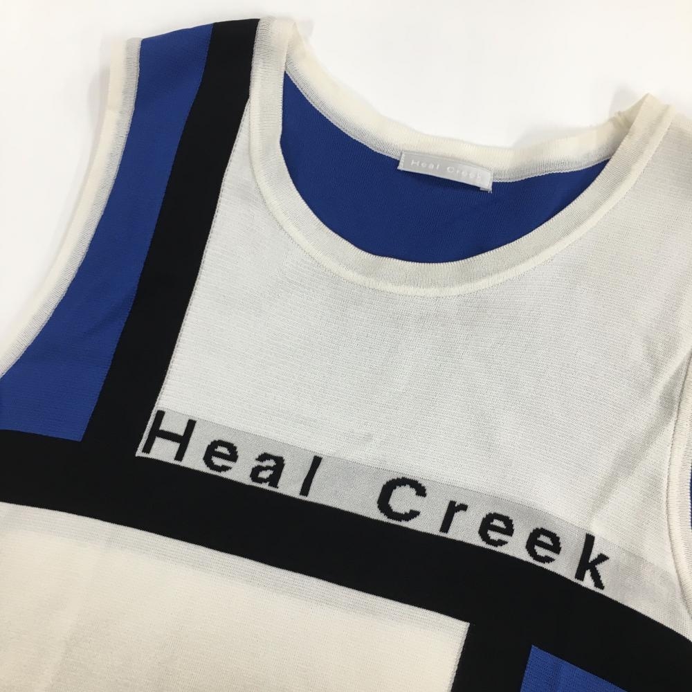 ヒールクリーク ノースリーブニットワンピース 白×ブルー 胸元ロゴ レディース 42(L) ゴルフウェア Heal Creek