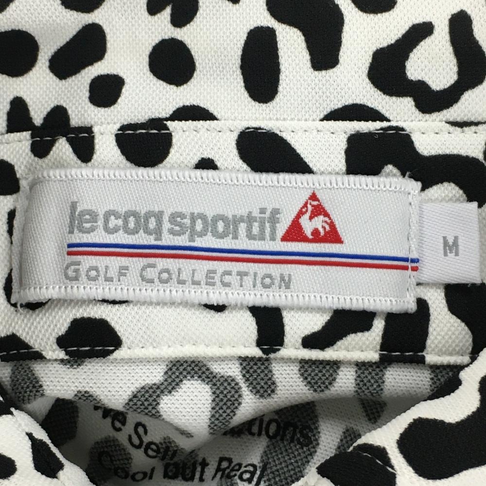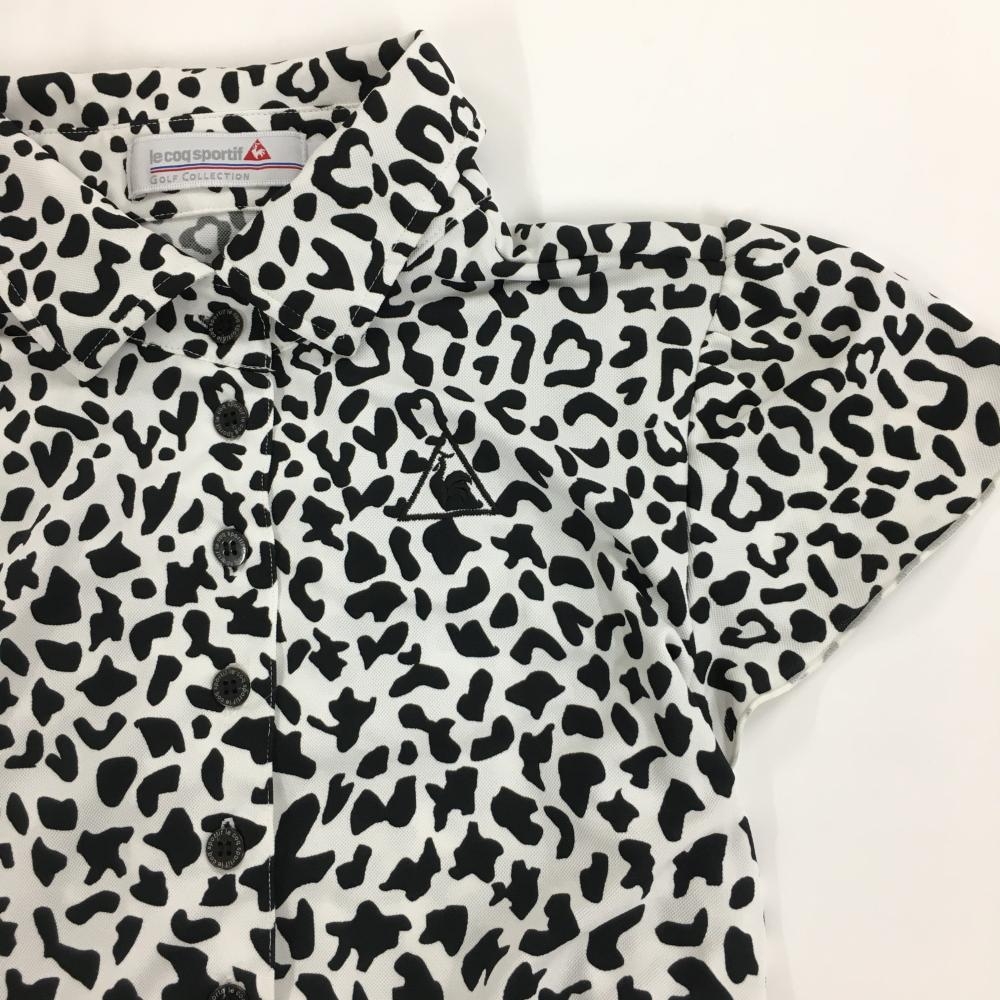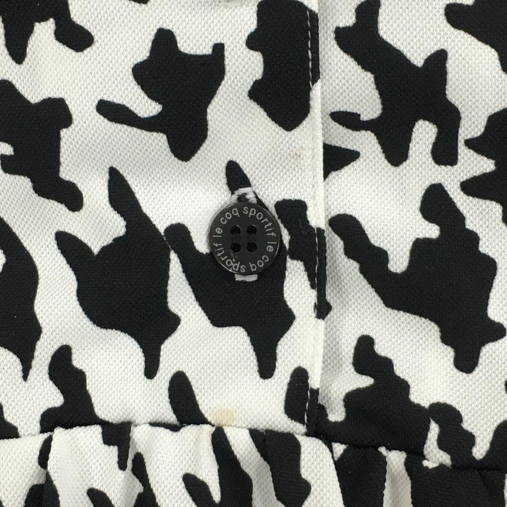 【美品】ルコックゴルフ 半袖ポロワンピース 白×黒 総柄 襟リボン付き レディース M ゴルフウェア le coq sportif