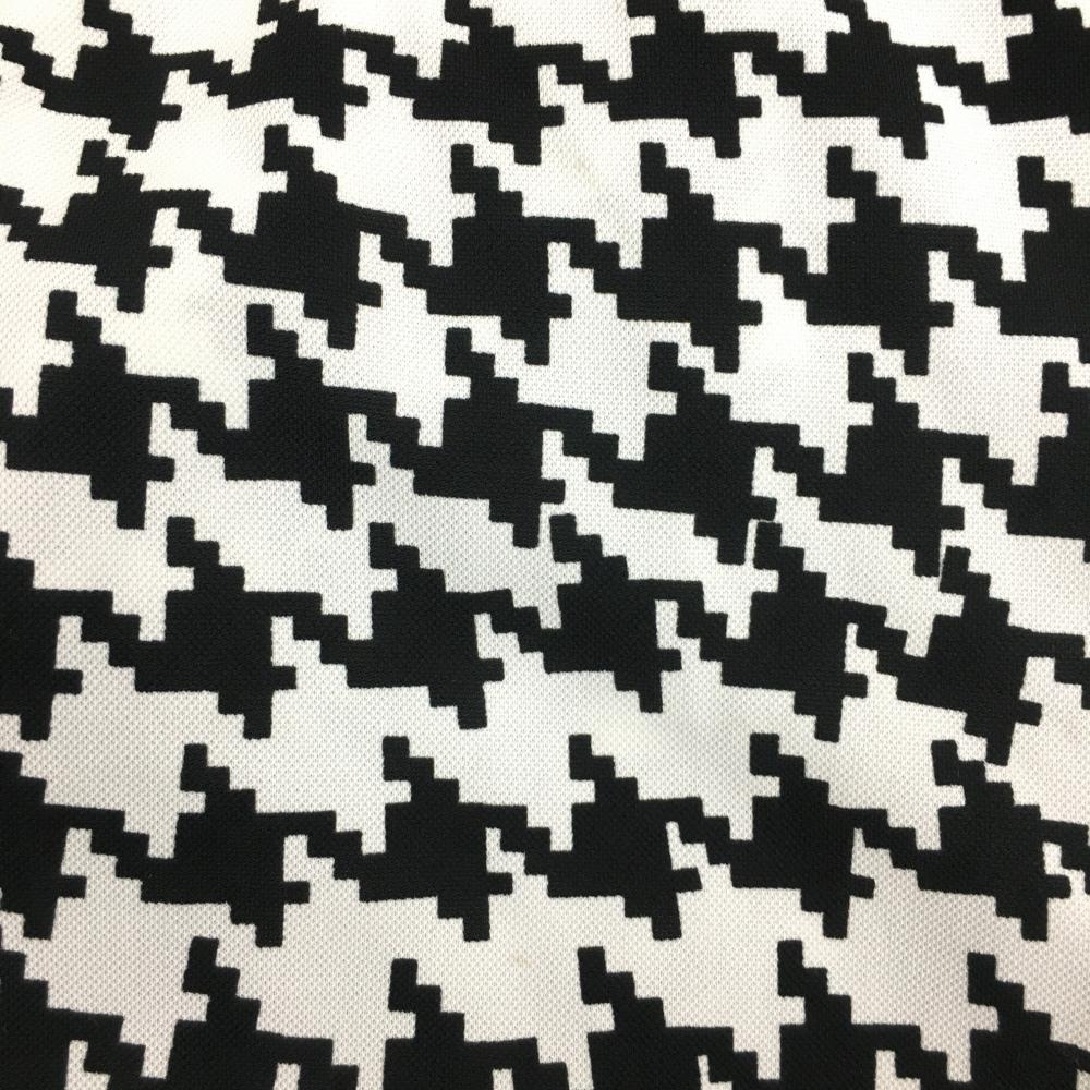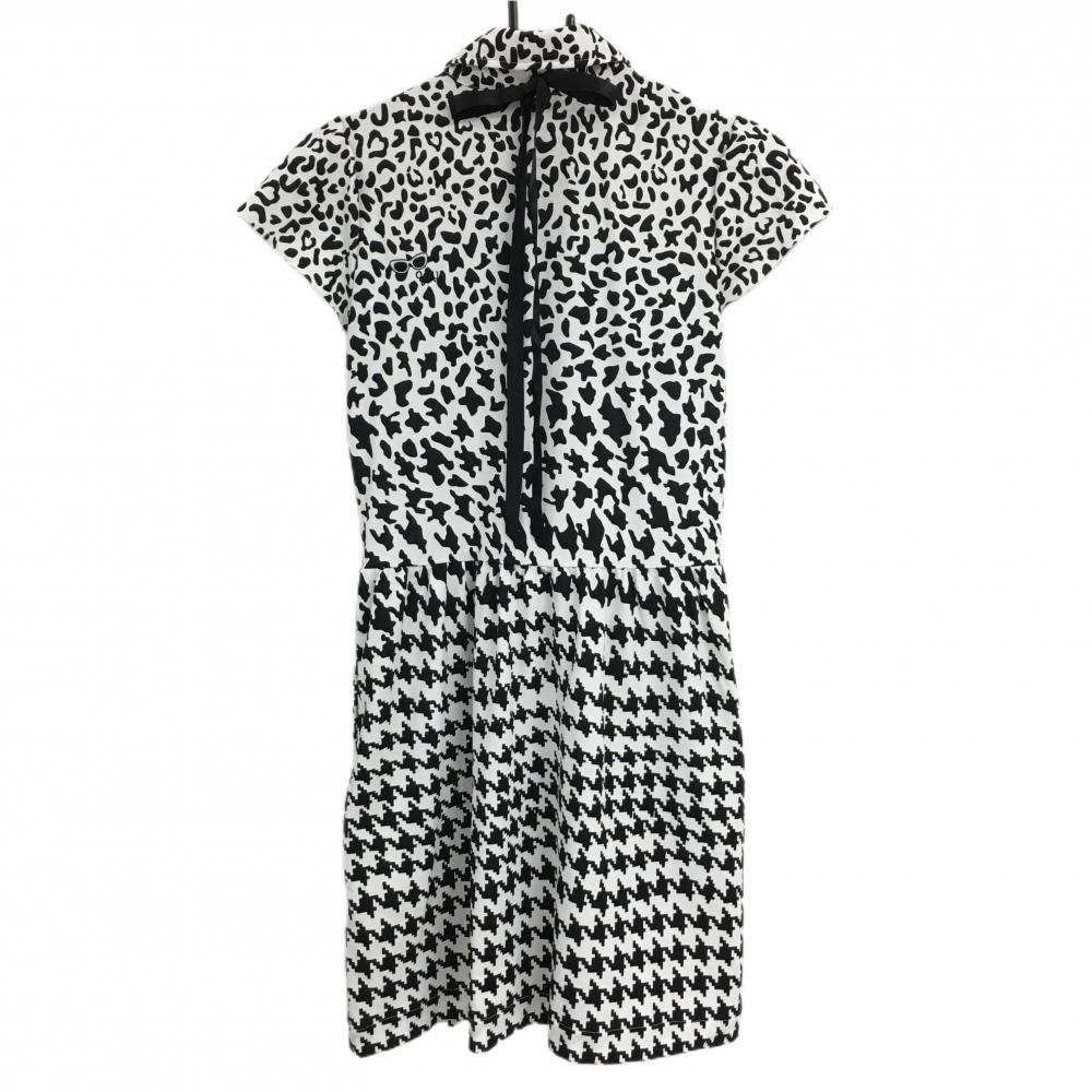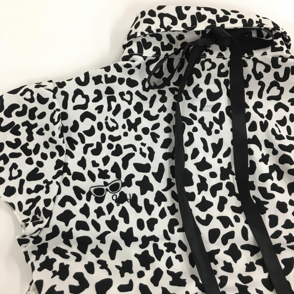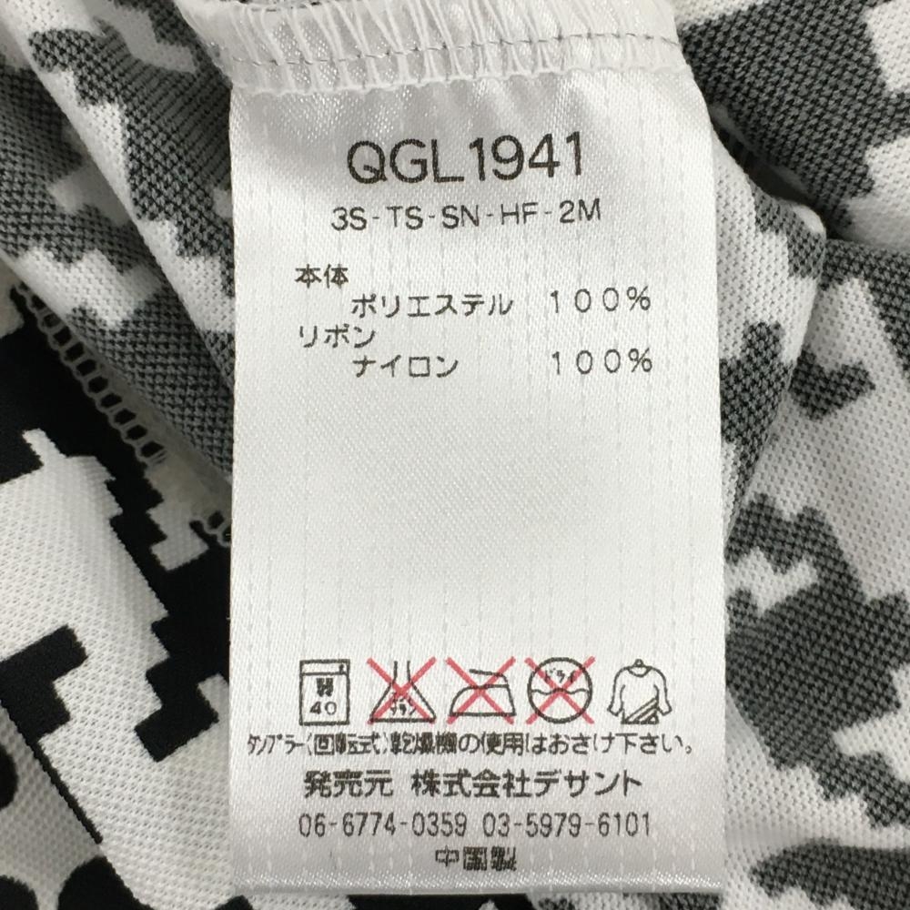 【美品】ルコックゴルフ 半袖ポロワンピース 白×黒 総柄 襟リボン付き レディース M ゴルフウェア le coq sportif