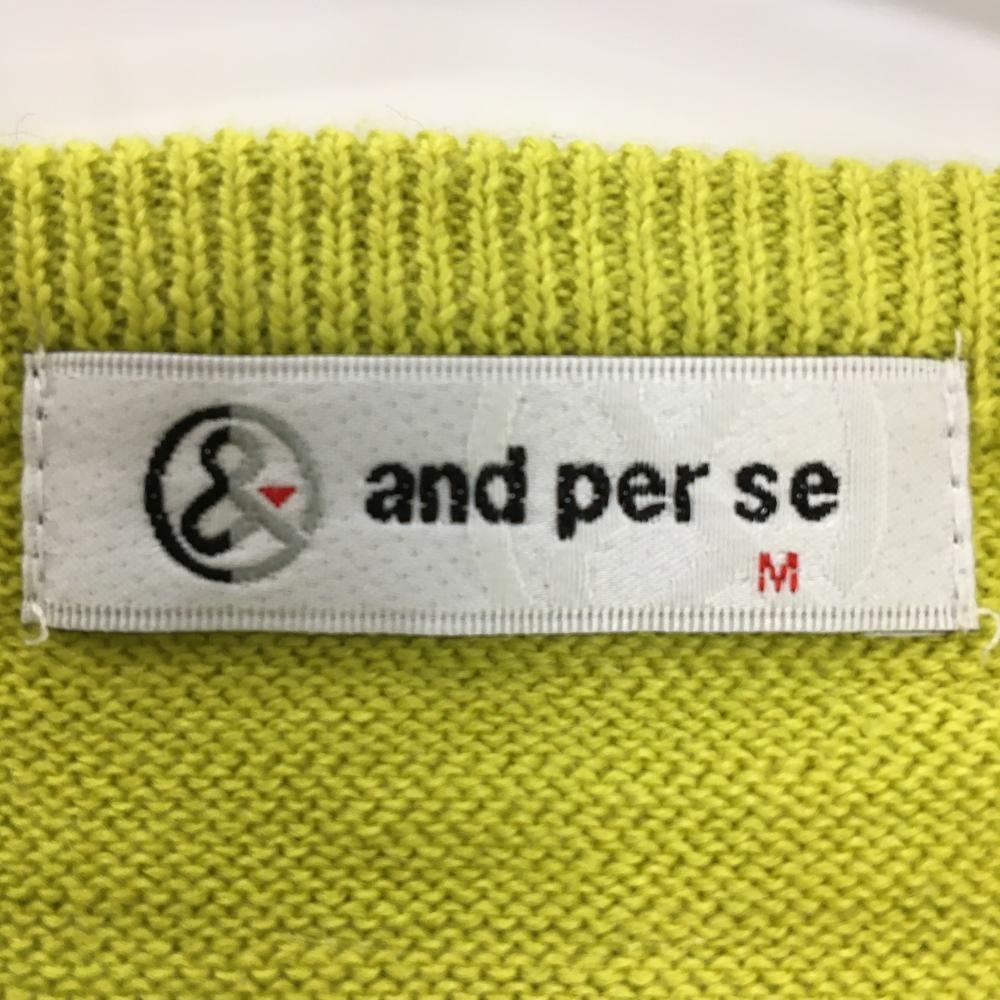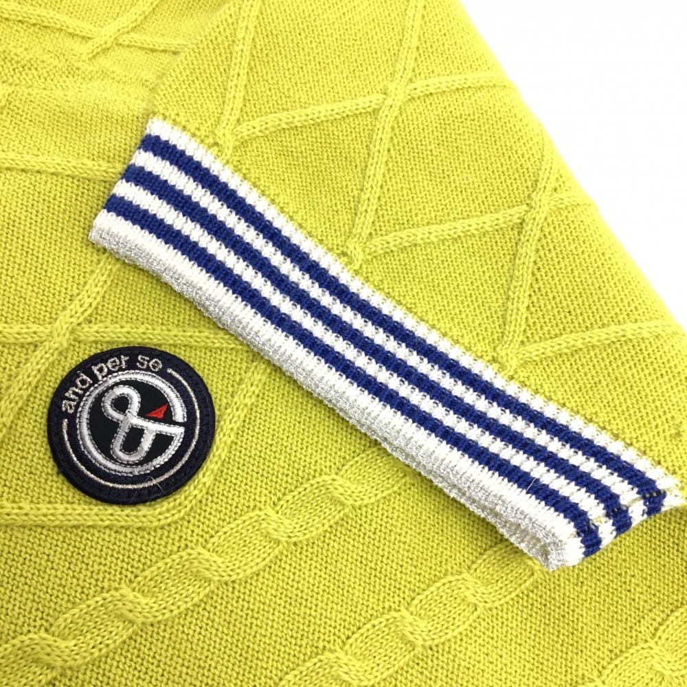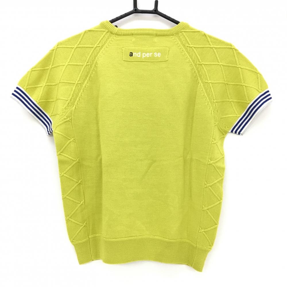 【超美品】アンパスィ 半袖セーター ライトグリーン ケーブル編み ウール混 ニット レディース M ゴルフウェア and per se