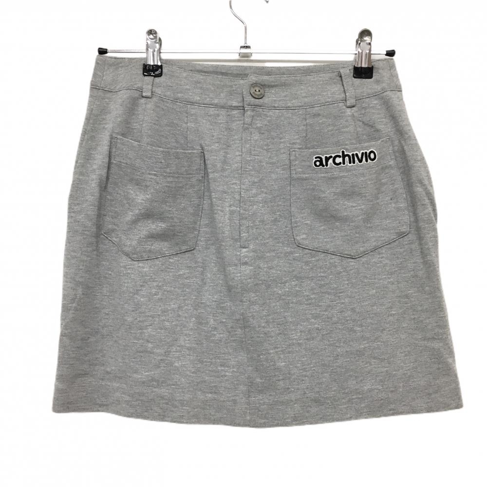 【超美品】アルチビオ ストレッチスカート グレー×黒 スクエアワッペン 裏地付 レディース 36(S) ゴルフウェア archivio