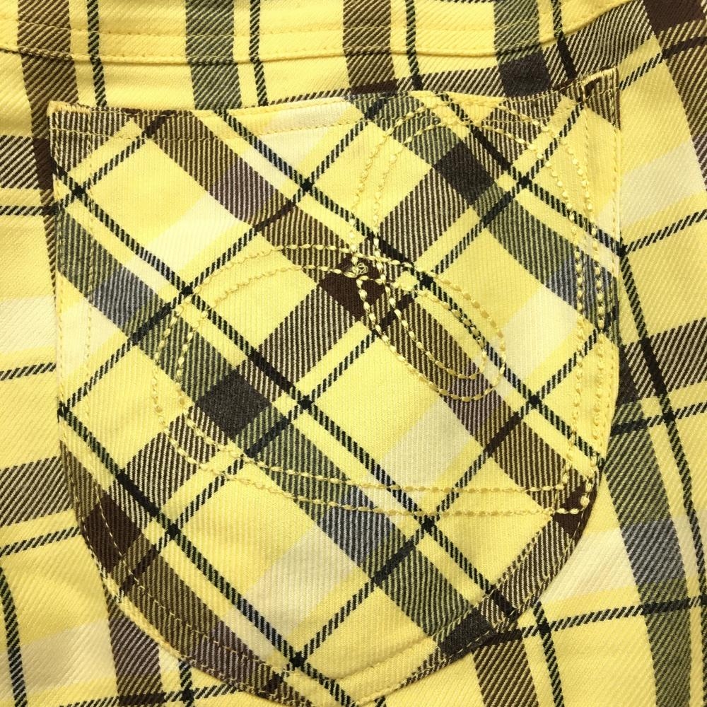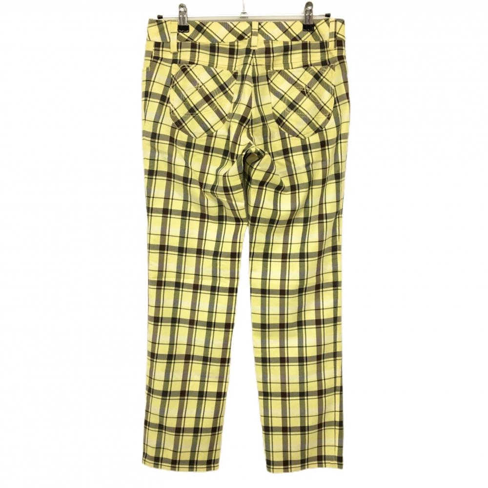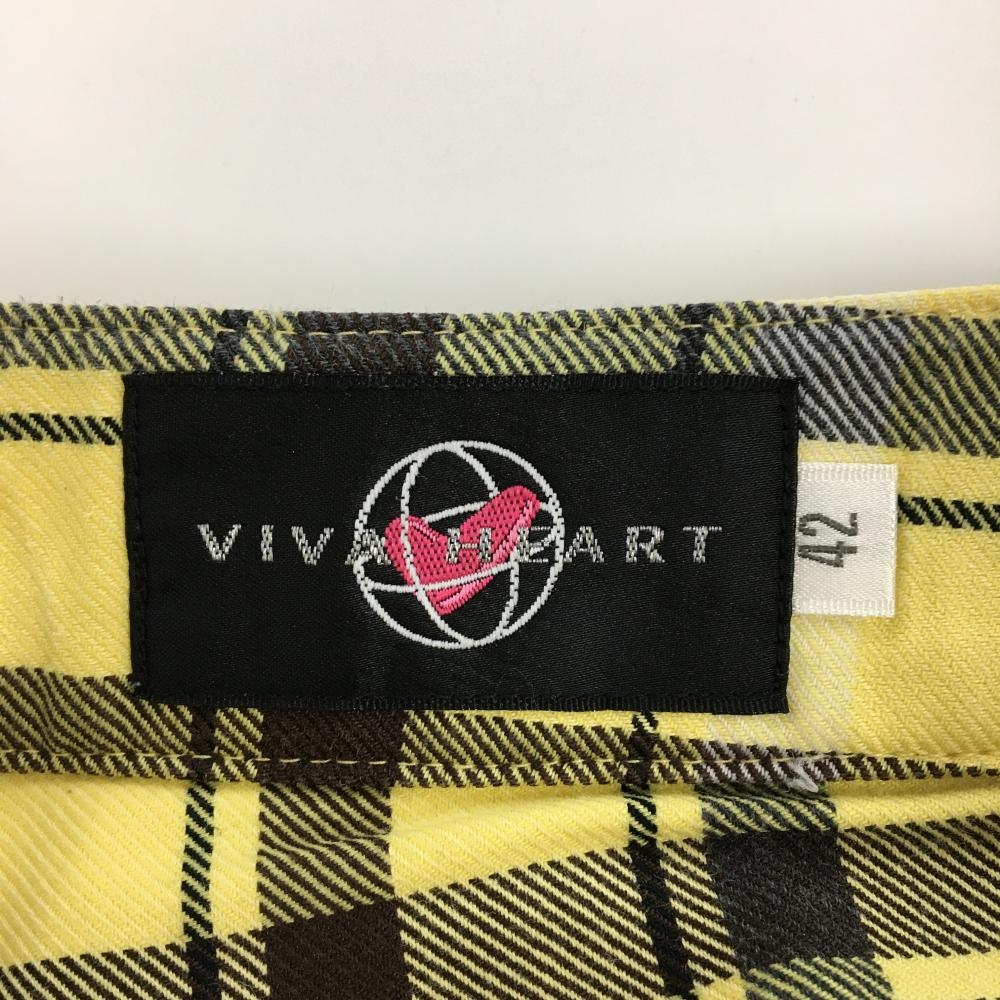 【超美品】ビバハート パンツ イエロー×ブラウン チェック ティー装着可 レディース 42(L) ゴルフウェア VIVA HEART