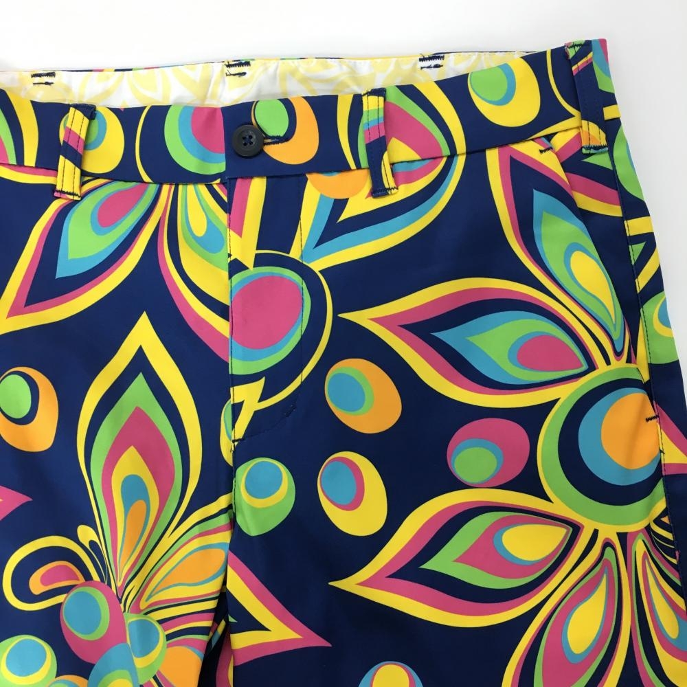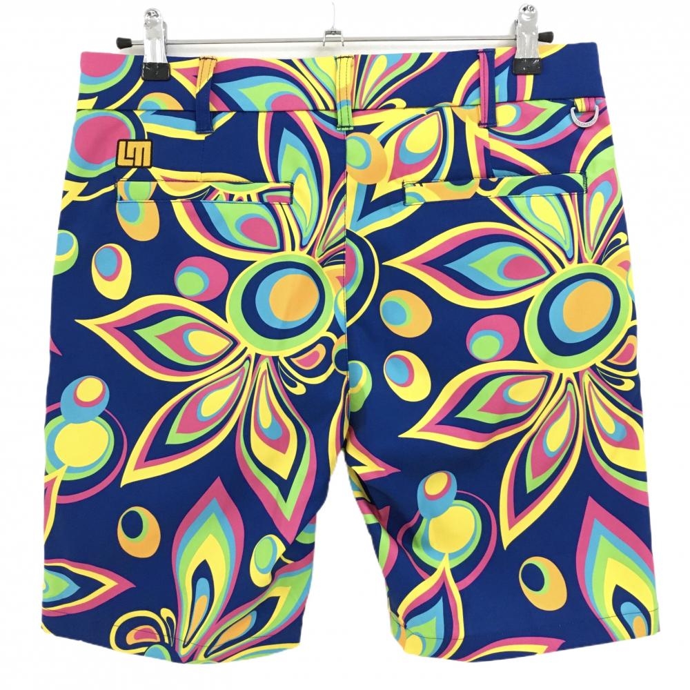 【超美品】ラウドマウス ハーフパンツ ネイビー×ピンク×イエロー シャガデリック メンズ M ゴルフウェア LOUDMOUTH