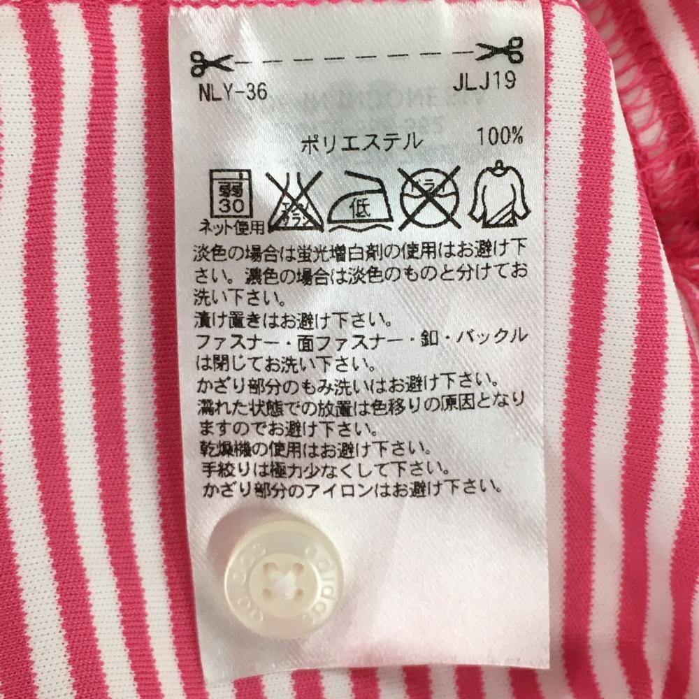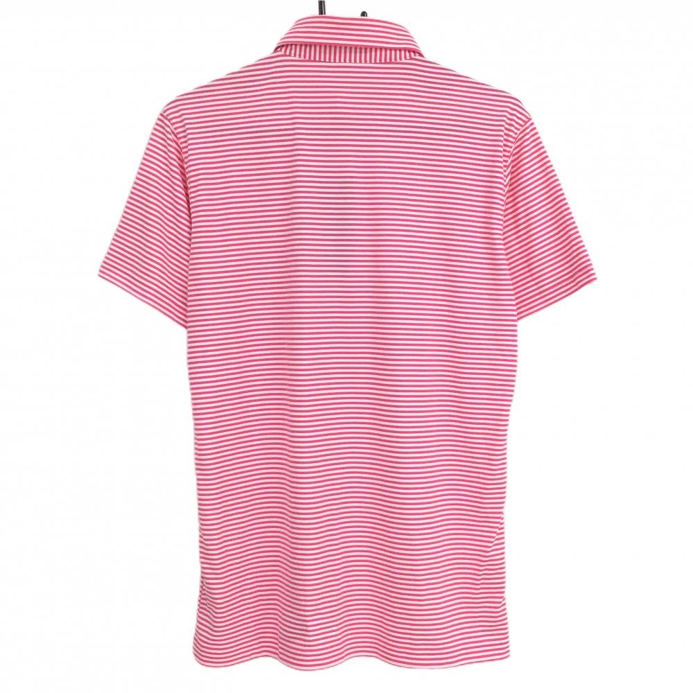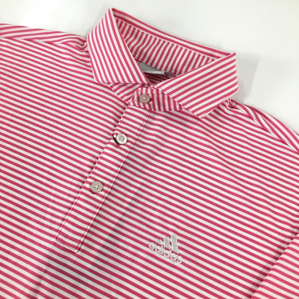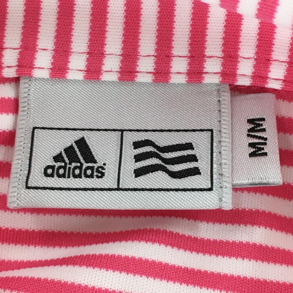 【新品】アディダス 半袖ポロシャツ 白×ピンク ボーダー ロゴ刺しゅう メンズ M/M ゴルフウェア adidas