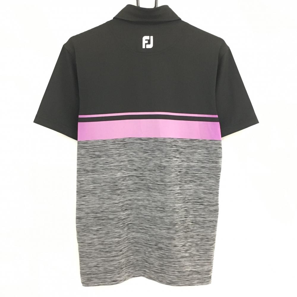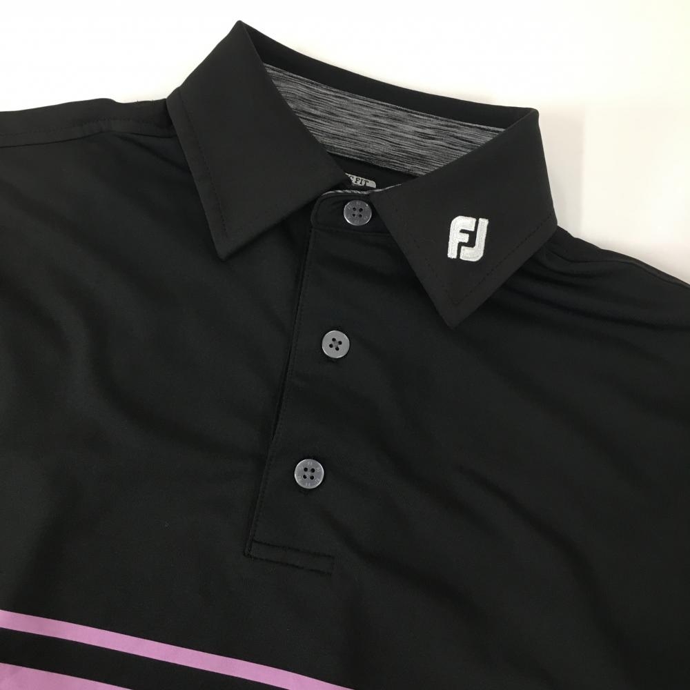 【超美品】フットジョイ 半袖ポロシャツ 黒×パープル 襟ロゴ刺しゅう メンズ XS ゴルフウェア FootJoy