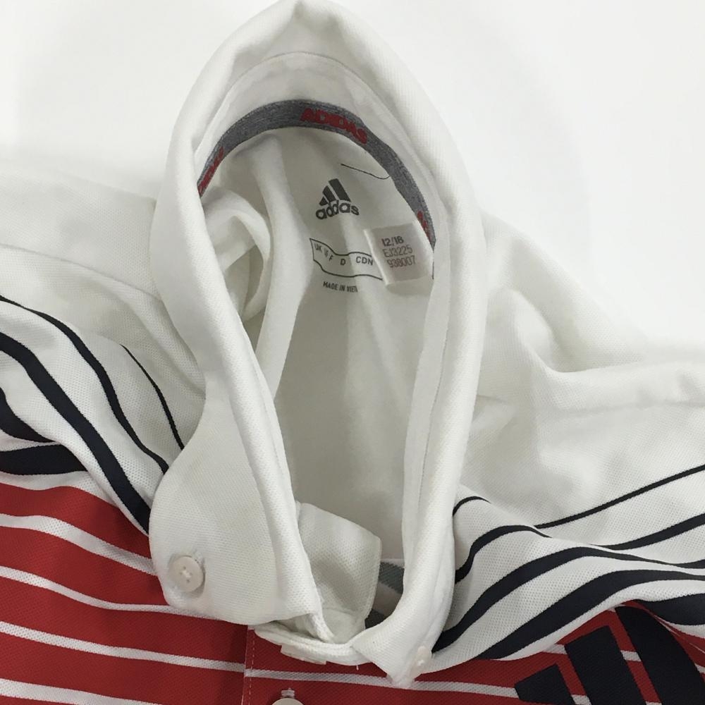 アディダス 半袖ポロシャツ 白×ネイビー 一部ボーダー調 メンズ L ゴルフウェア adidas