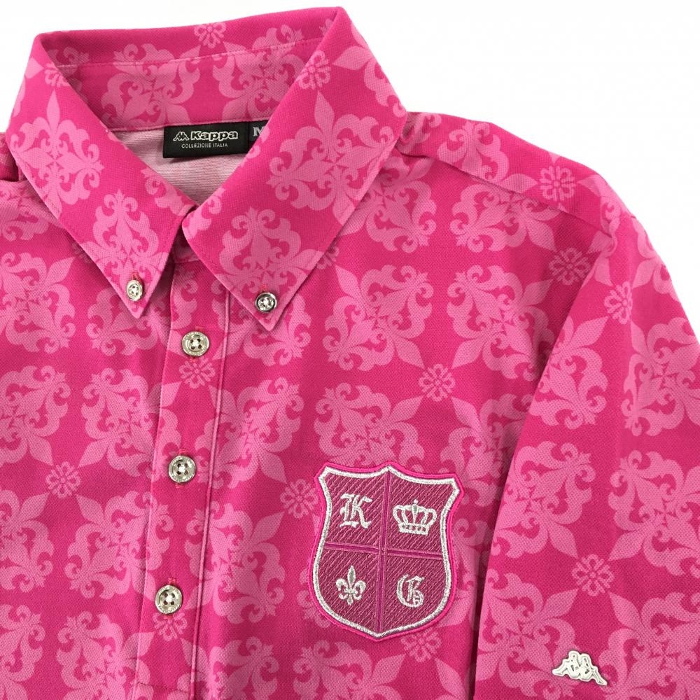 【超美品】カッパ 半袖ポロシャツ ピンク×ライトピンク 総柄 ボタンダウン レディース M ゴルフウェア Kappa