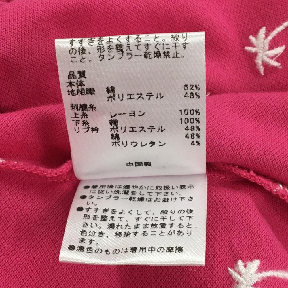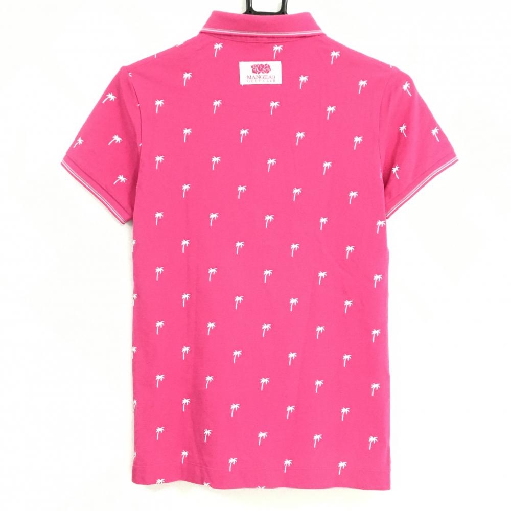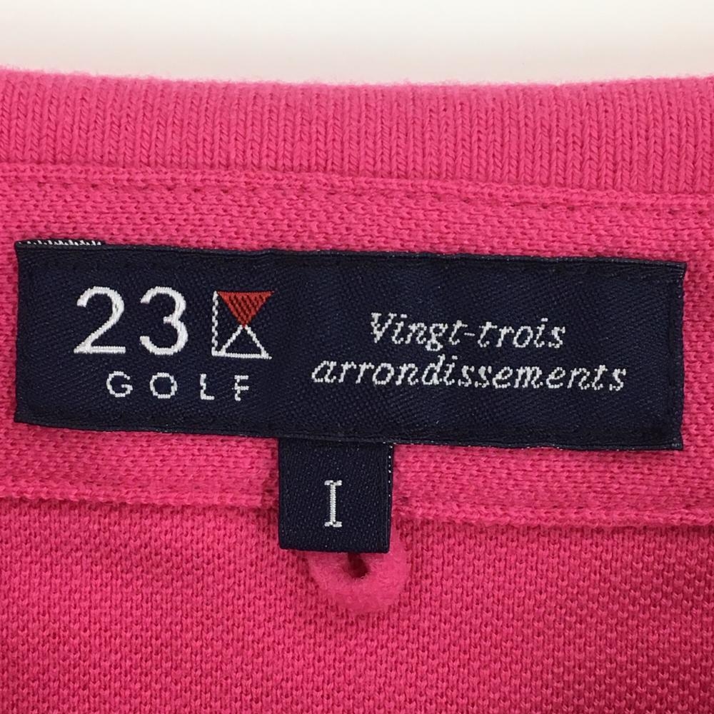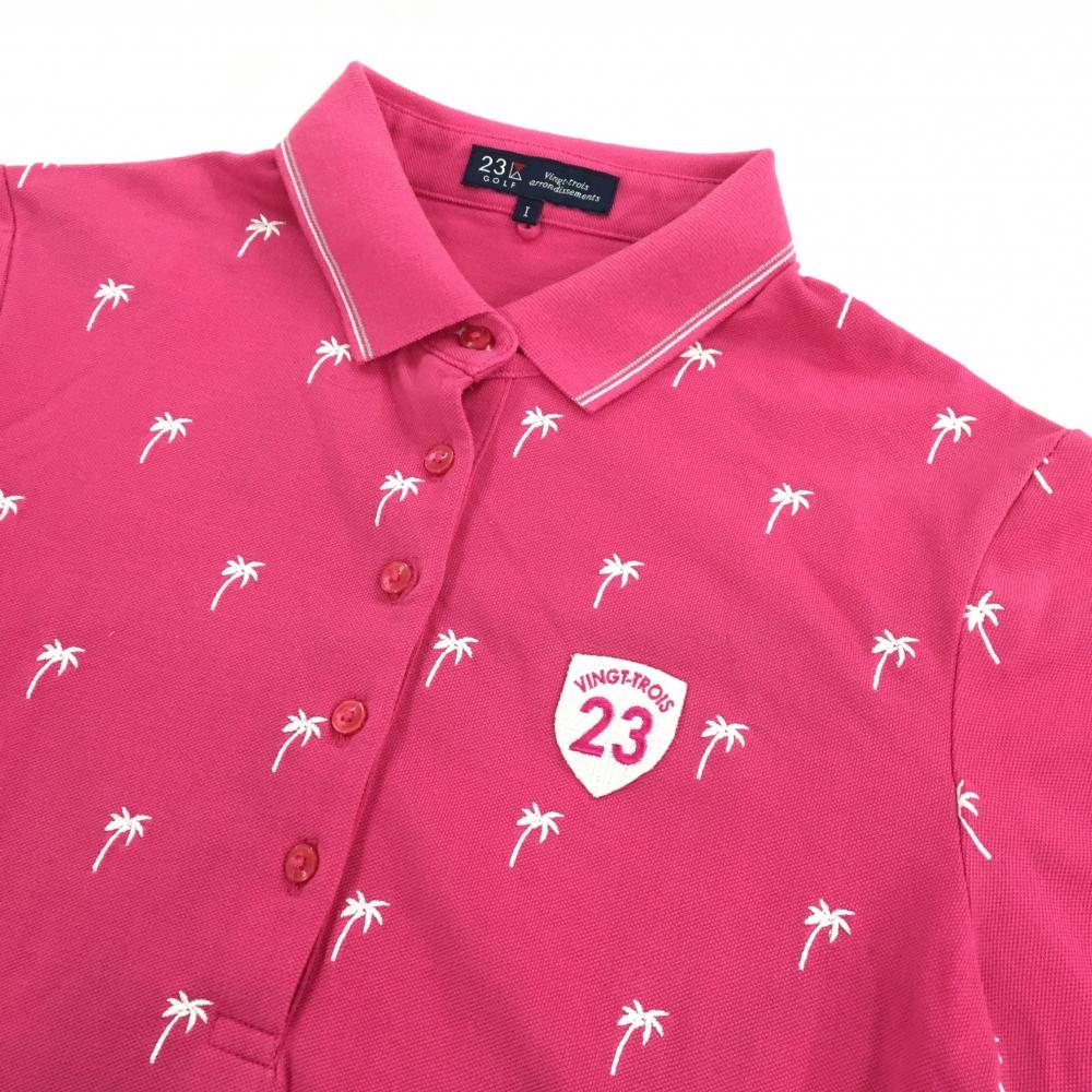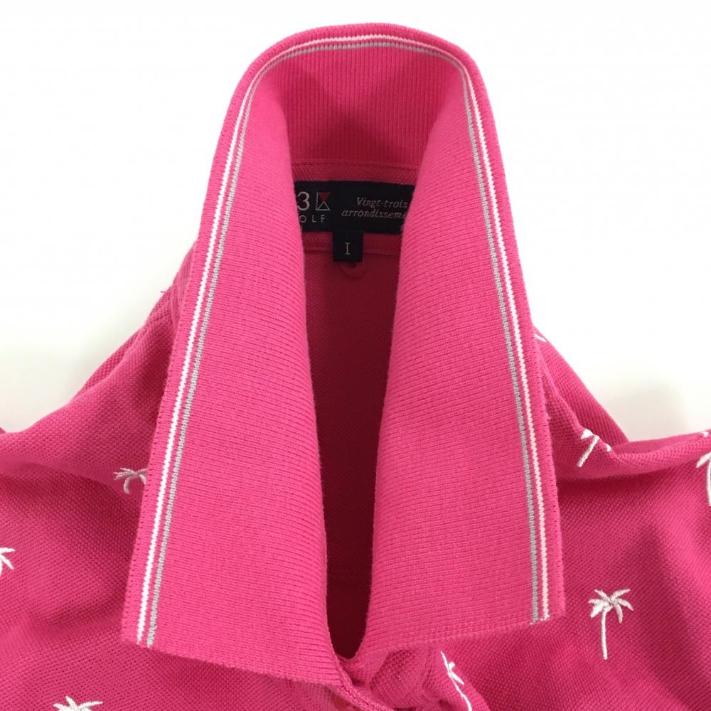 【美品】23区ゴルフ 半袖ポロシャツ ピンク×白 ヤシの木刺しゅう 襟ライン レディース I(M) ゴルフウェア 23区