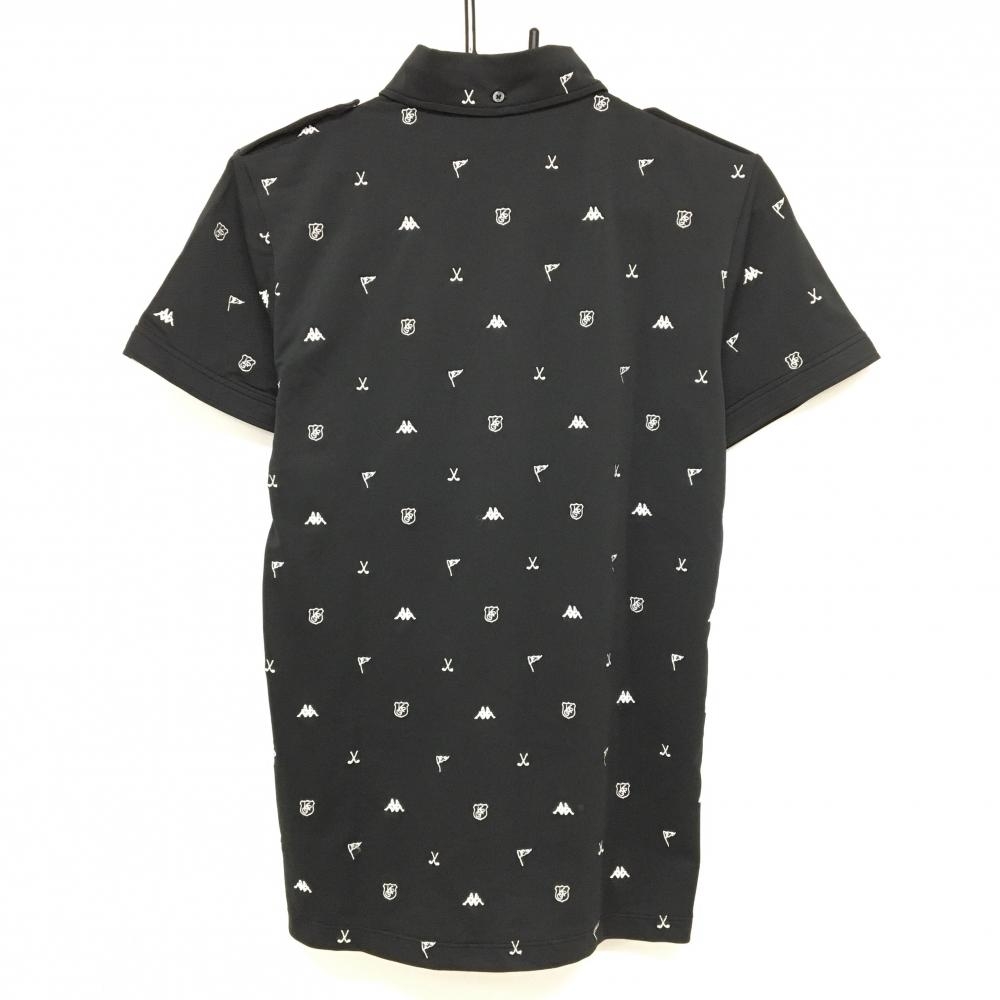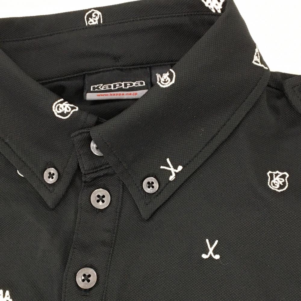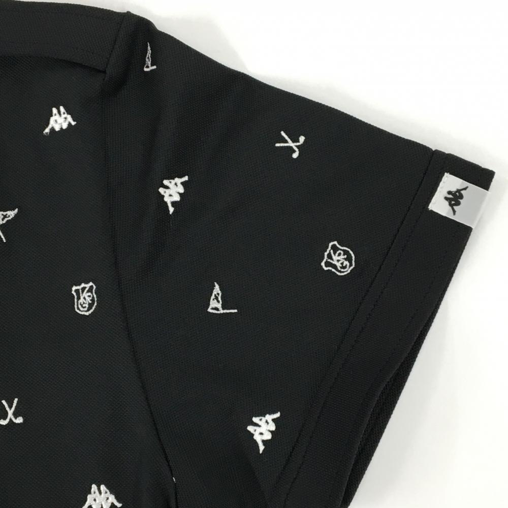 【超美品】カッパ 半袖ポロシャツ 黒×白 刺しゅう総柄 ボタンダウン レディース M ゴルフウェア Kappa