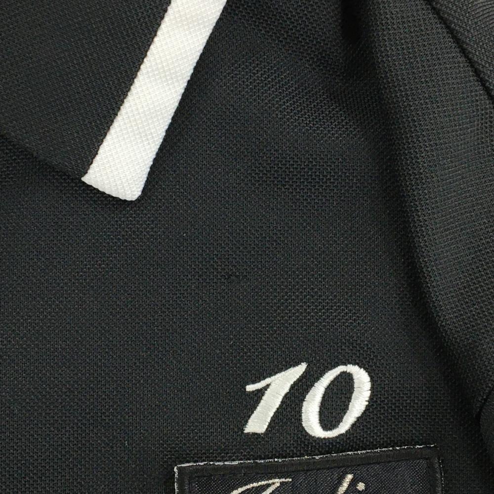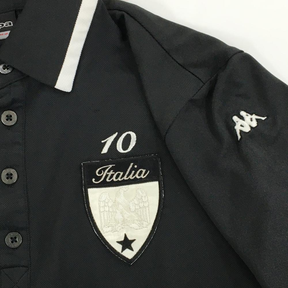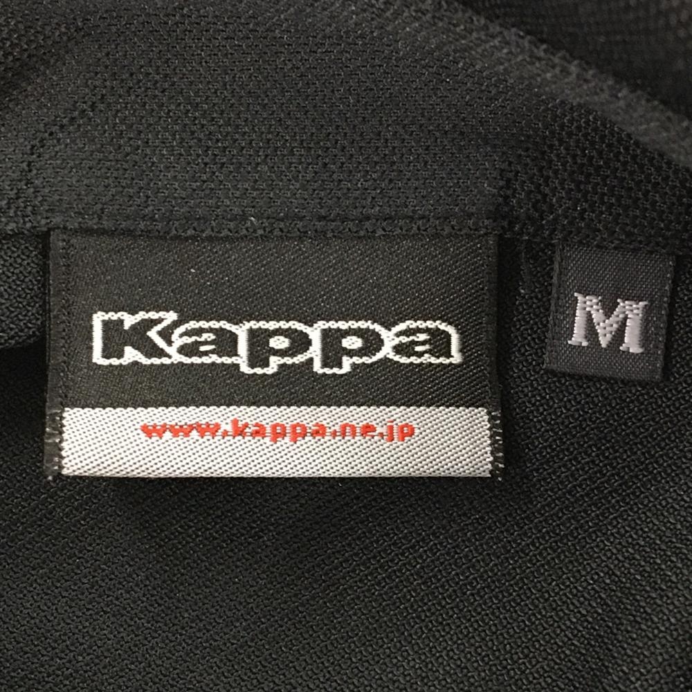 【美品】カッパ 半袖ポロシャツ 黒×白 襟・袖ライン 胸元ワッペン レディース M ゴルフウェア Kappa