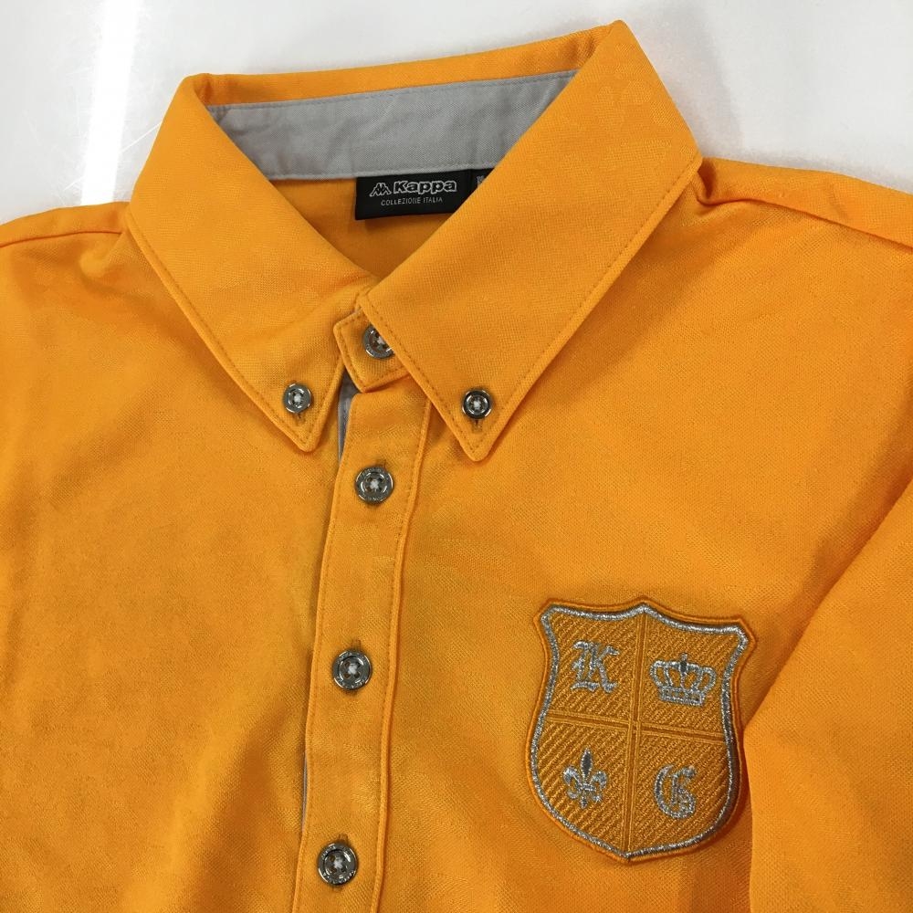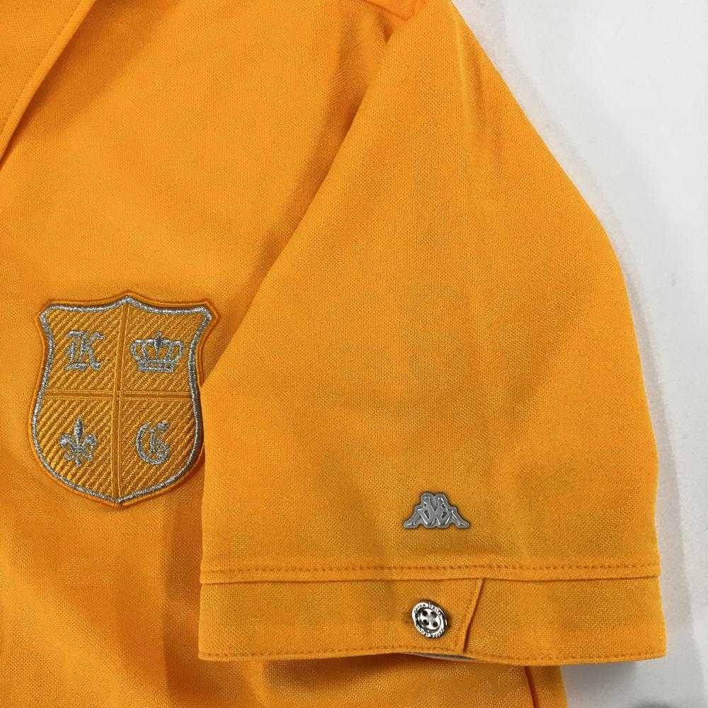 【超美品】カッパ 半袖ポロシャツ オレンジ レオパード柄地模様 ボタンダウン レディース M ゴルフウェア Kappa