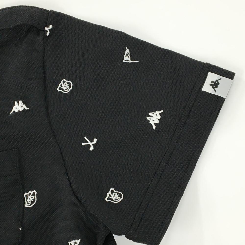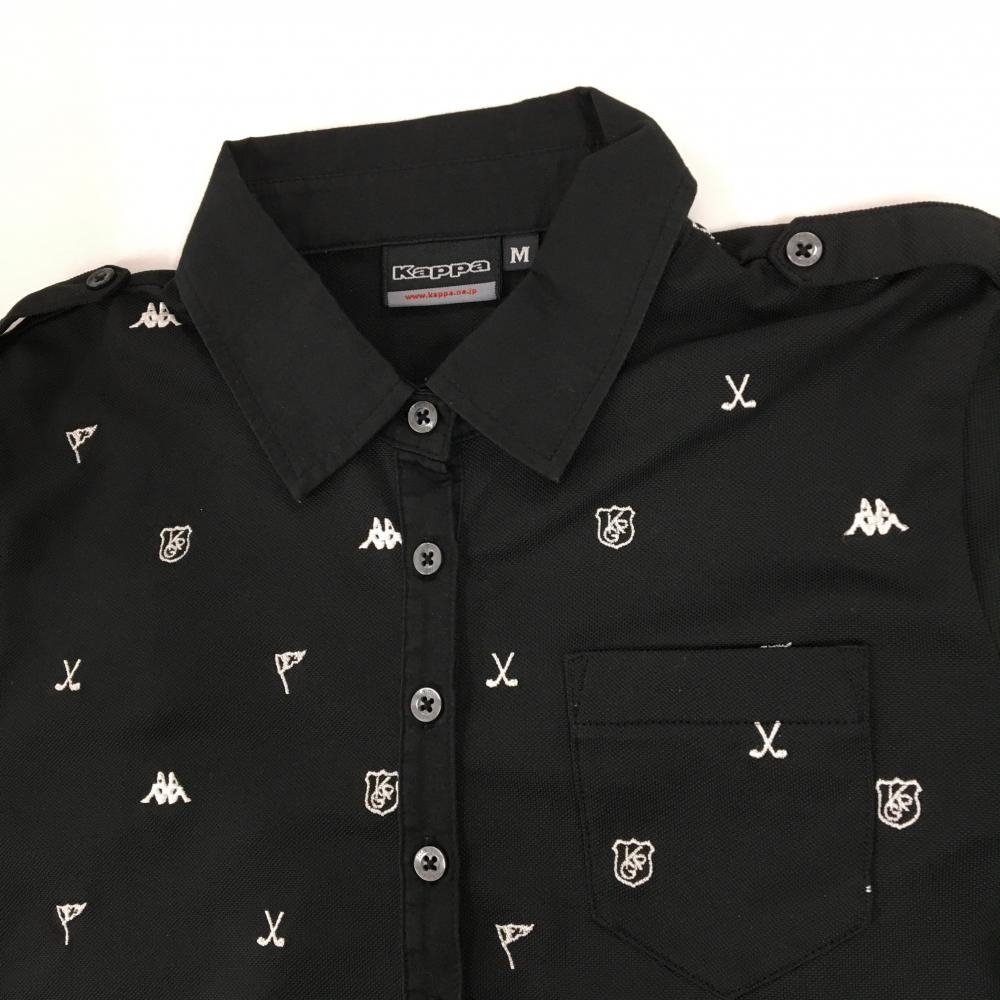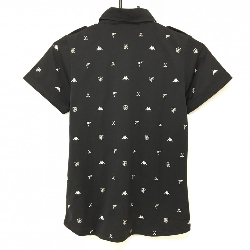 【超美品】カッパ 半袖ポロシャツ 黒×白 刺しゅう総柄 胸ポケット レディース M ゴルフウェア Kappa