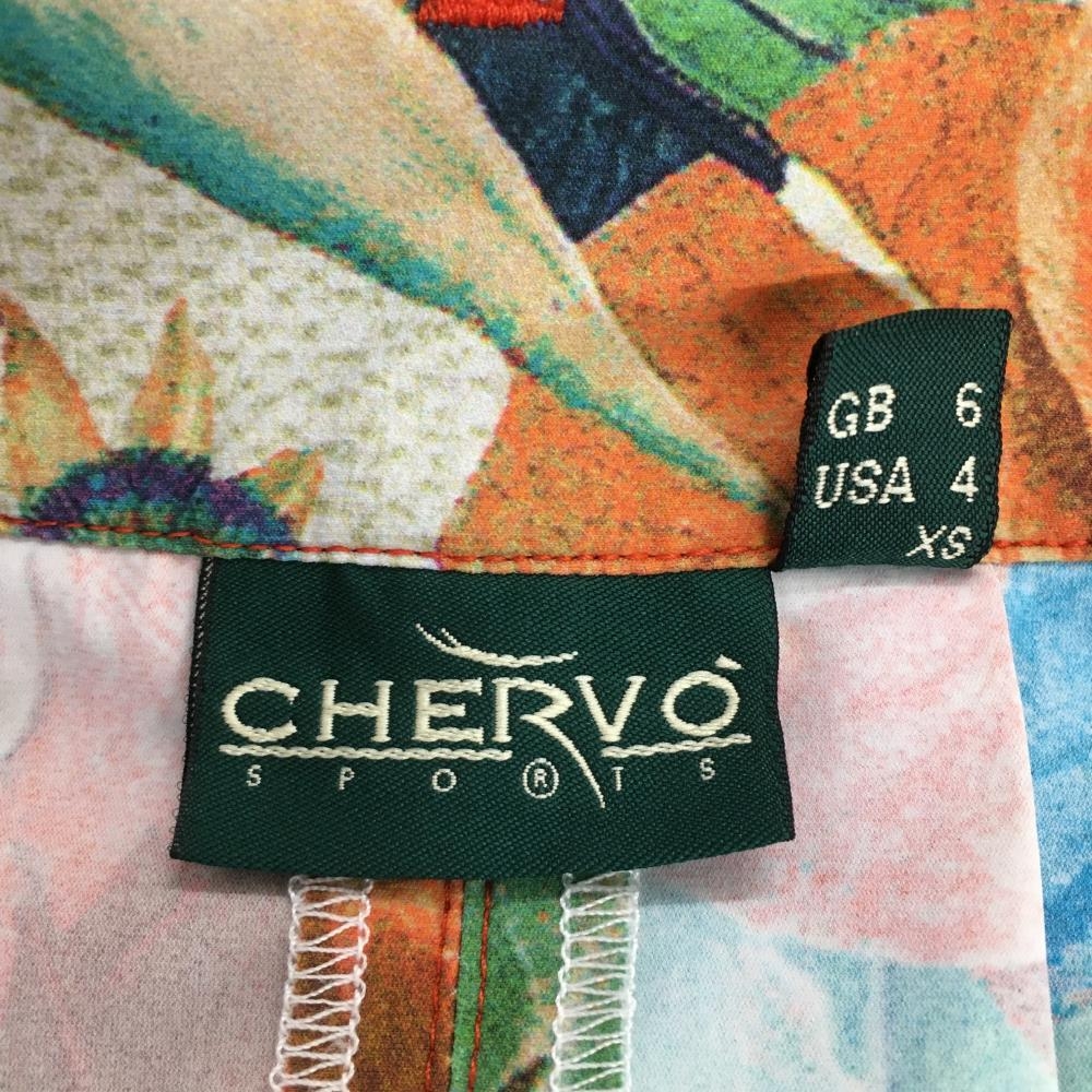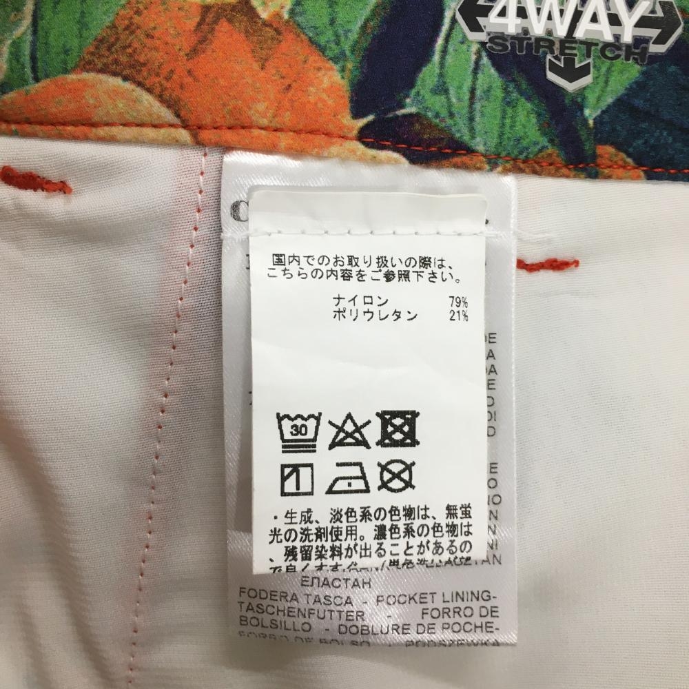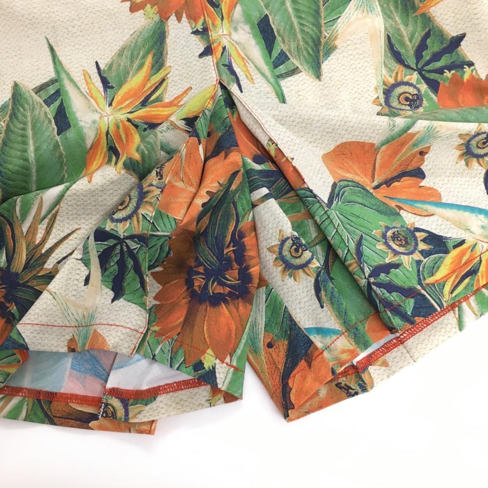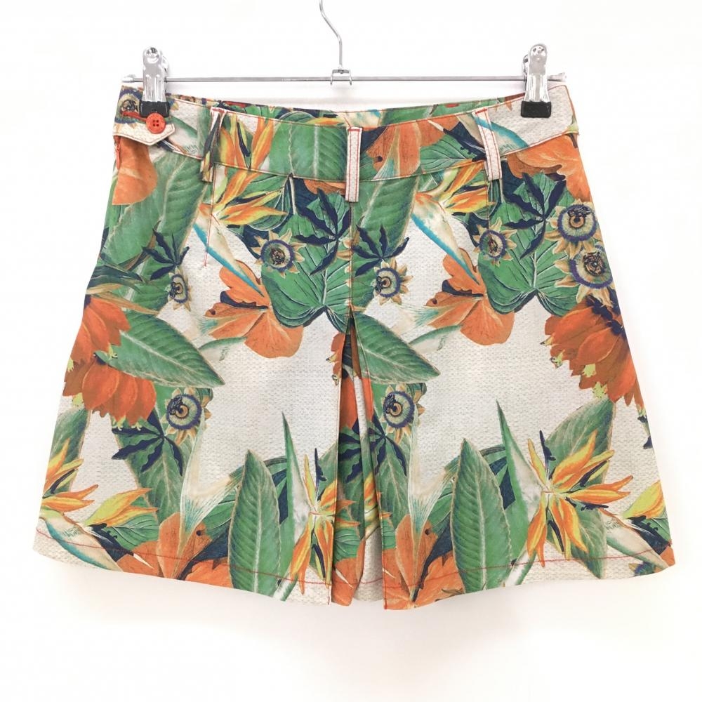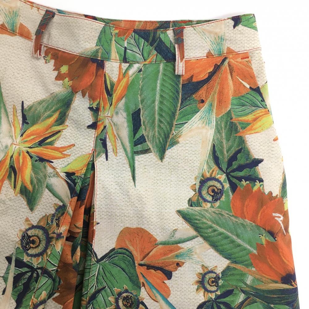 【超美品】シェルボ キュロットスカート ベージュ×グリーン×オレンジ 総柄 リーフ 花 ストレッチ レディース USA-XS ゴルフウェア CHERVO