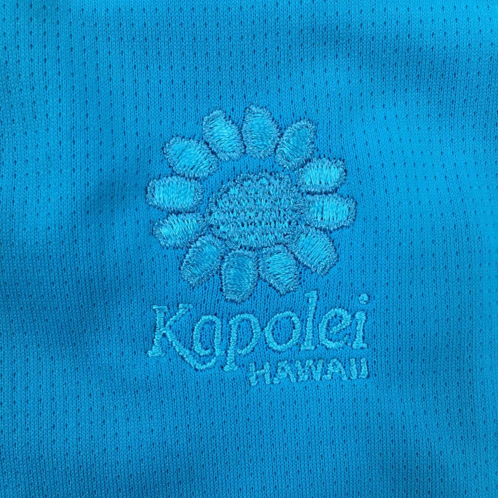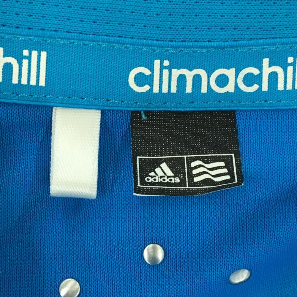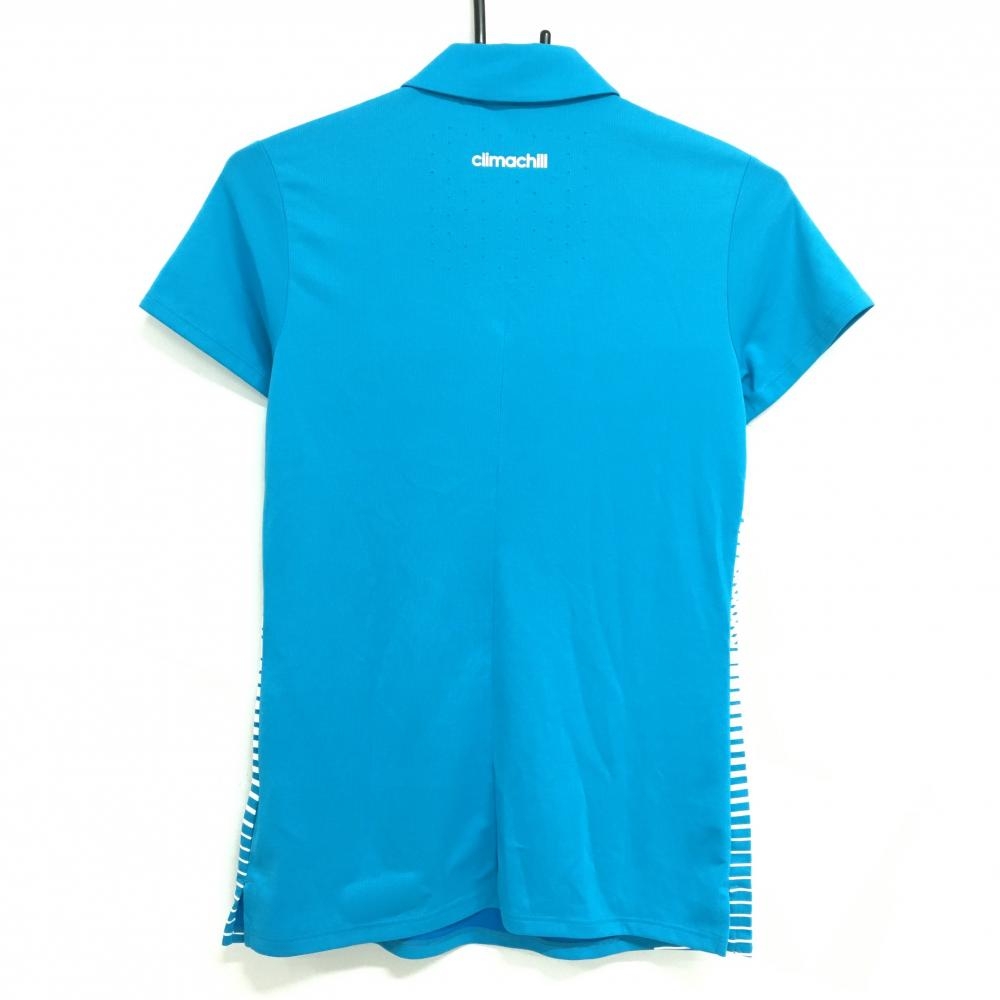 【美品】アディダス 半袖ポロシャツ ブルー×白 サイドボーダー風 kapolei レディース ゴルフウェア adidas