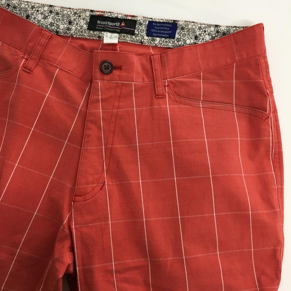 ルコックゴルフ パンツ レッド×白 格子チェック ストレッチ メンズ 85 ゴルフウェア le coq sportif