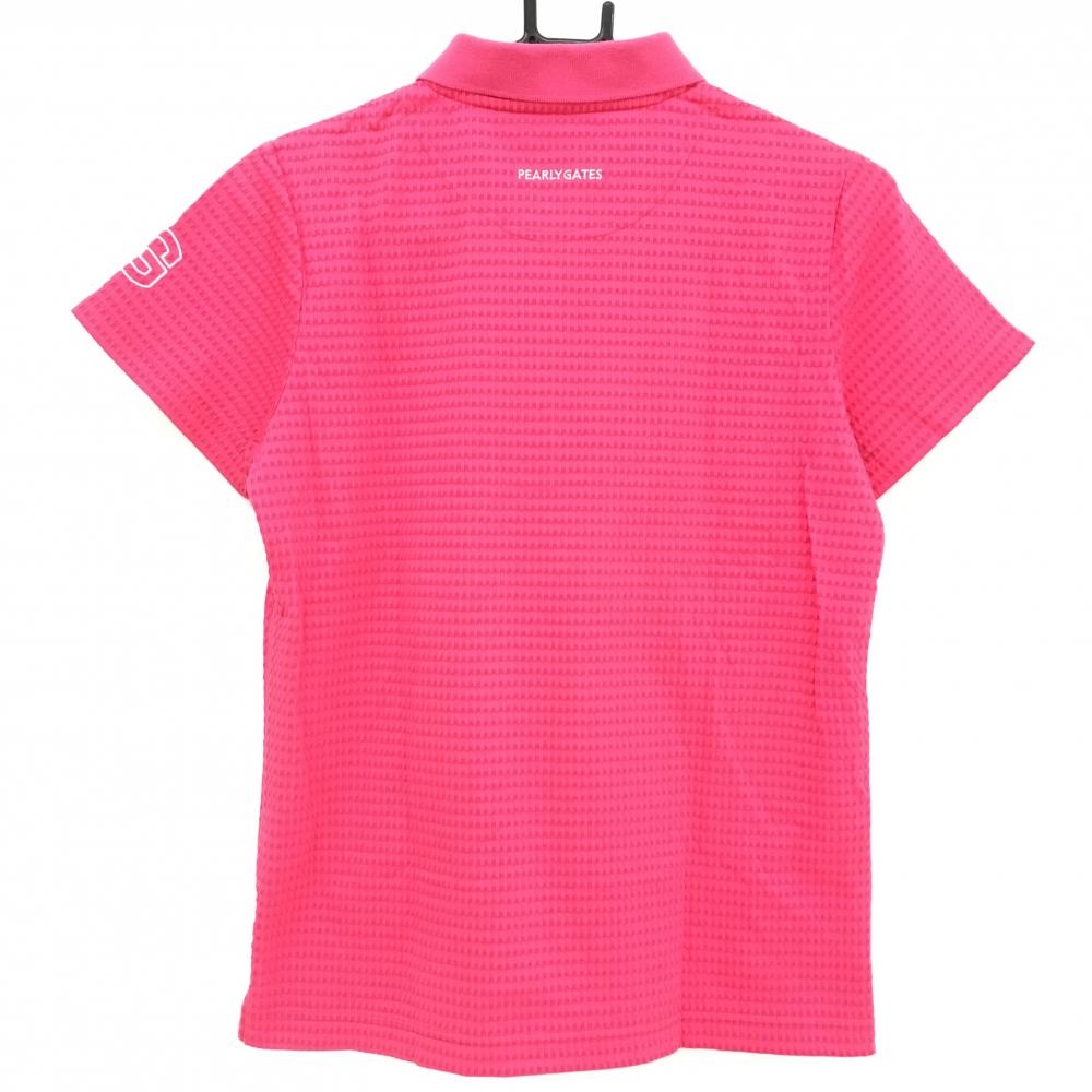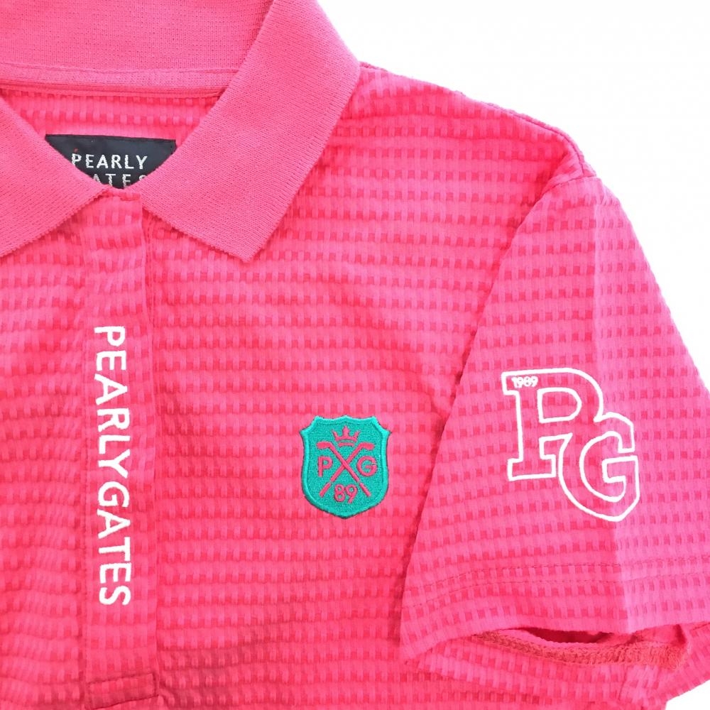 【超美品】パーリーゲイツ 半袖ポロシャツ ピンク 織生地 前立てロゴ レディース 1(M) ゴルフウェア PEARLY GATES