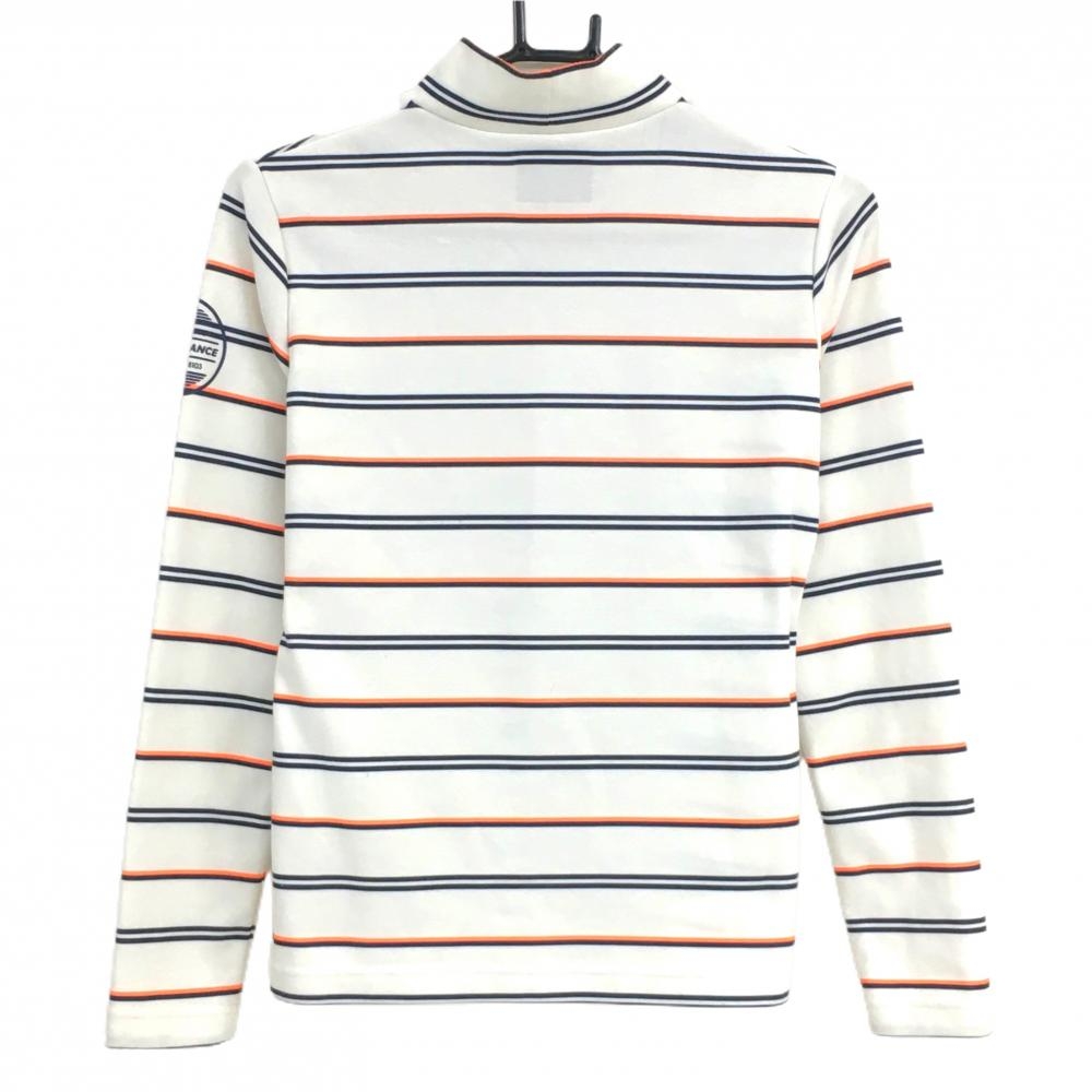 ニューバランスゴルフ 長袖ハイネックシャツ 白×ネイビー×オレンジ ボーダー ウール混 レディース 1(M) ゴルフウェア New Balance