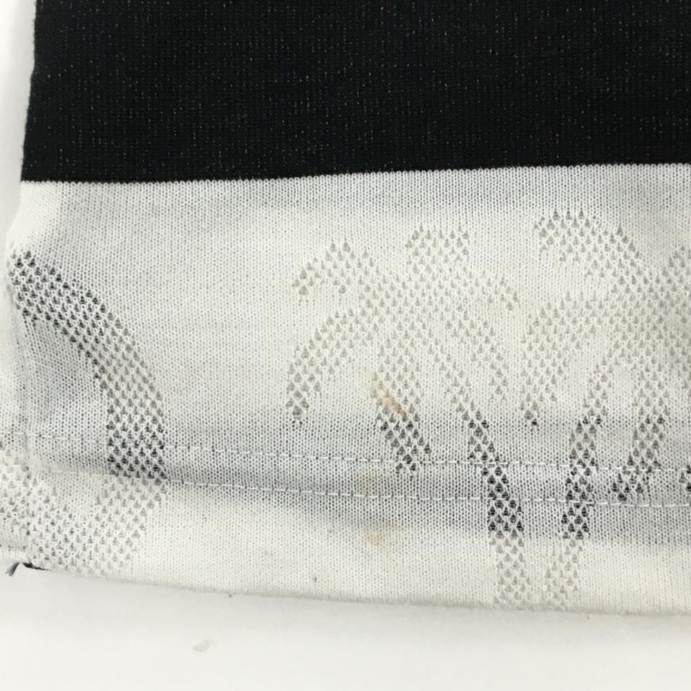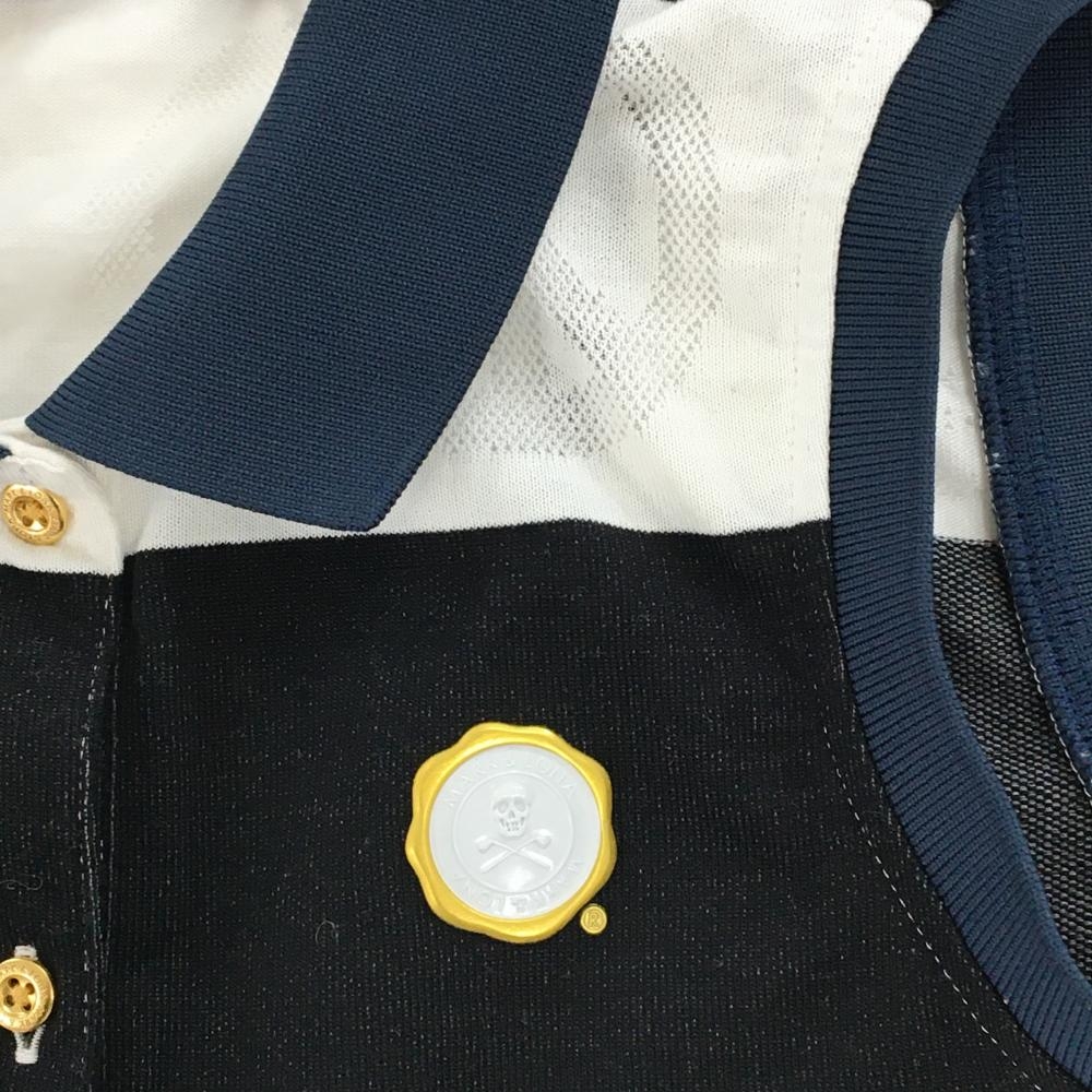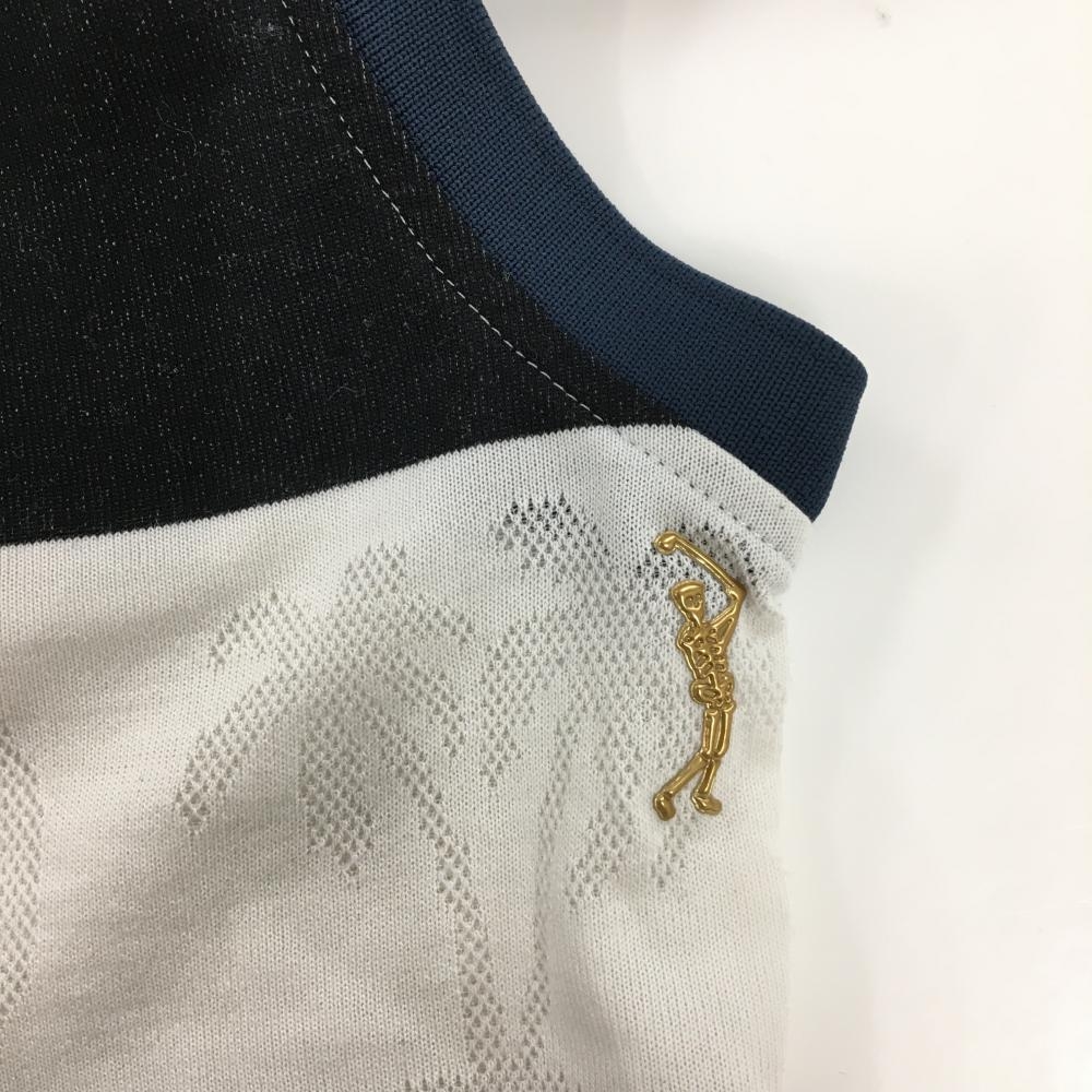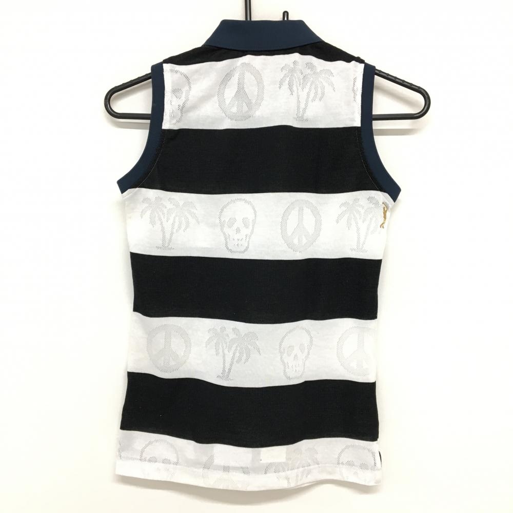マークアンドロナ ノースリーブポロシャツ 白×ダークネイビー ボーダー 白地部分柄 立体ロゴ レディース S ゴルフウェア MARK&LONA