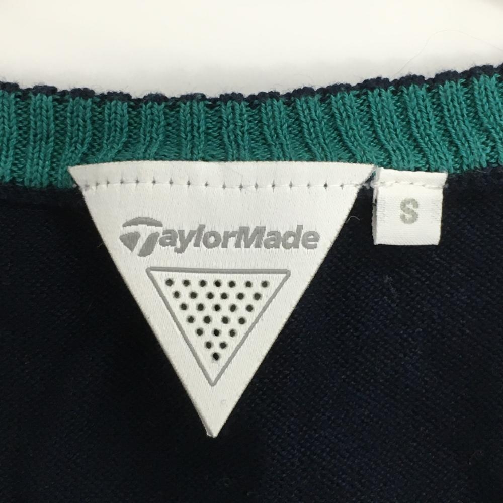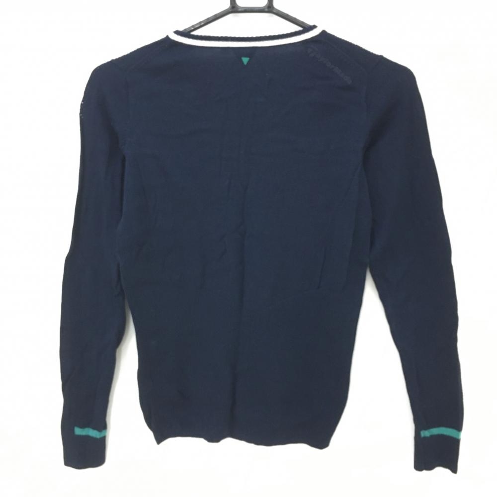 テーラーメイド セーター ネイビー×白 ニット 薄手 一部透かし編み Vネック 綿100% レディース S ゴルフウェア TaylorMade