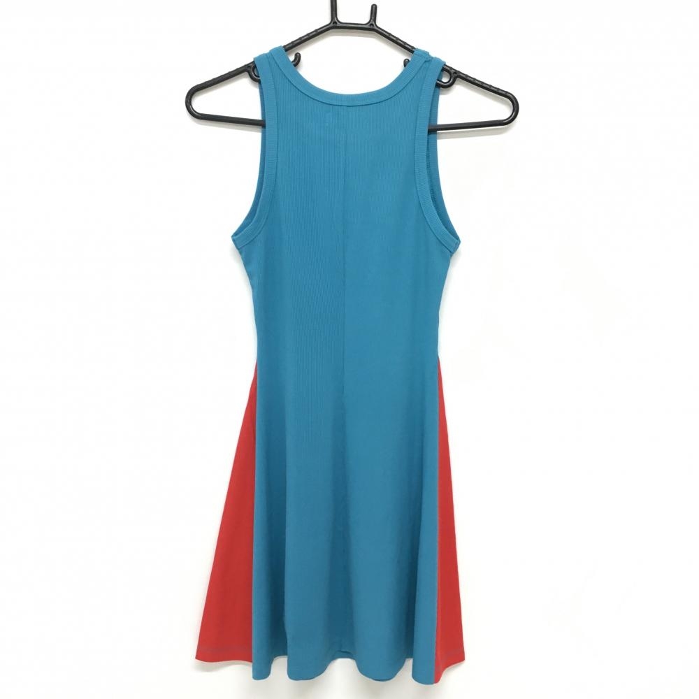 【新品】ノエルレシール ノースリーブワンピース ライトブルー×レッド 細ストライプ織生地 レディース 0 ゴルフウェア NOEL REUSSIR