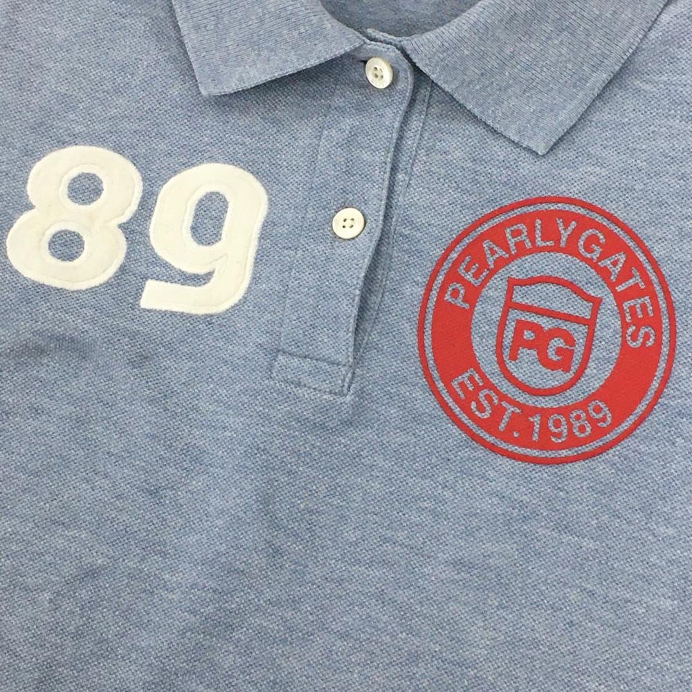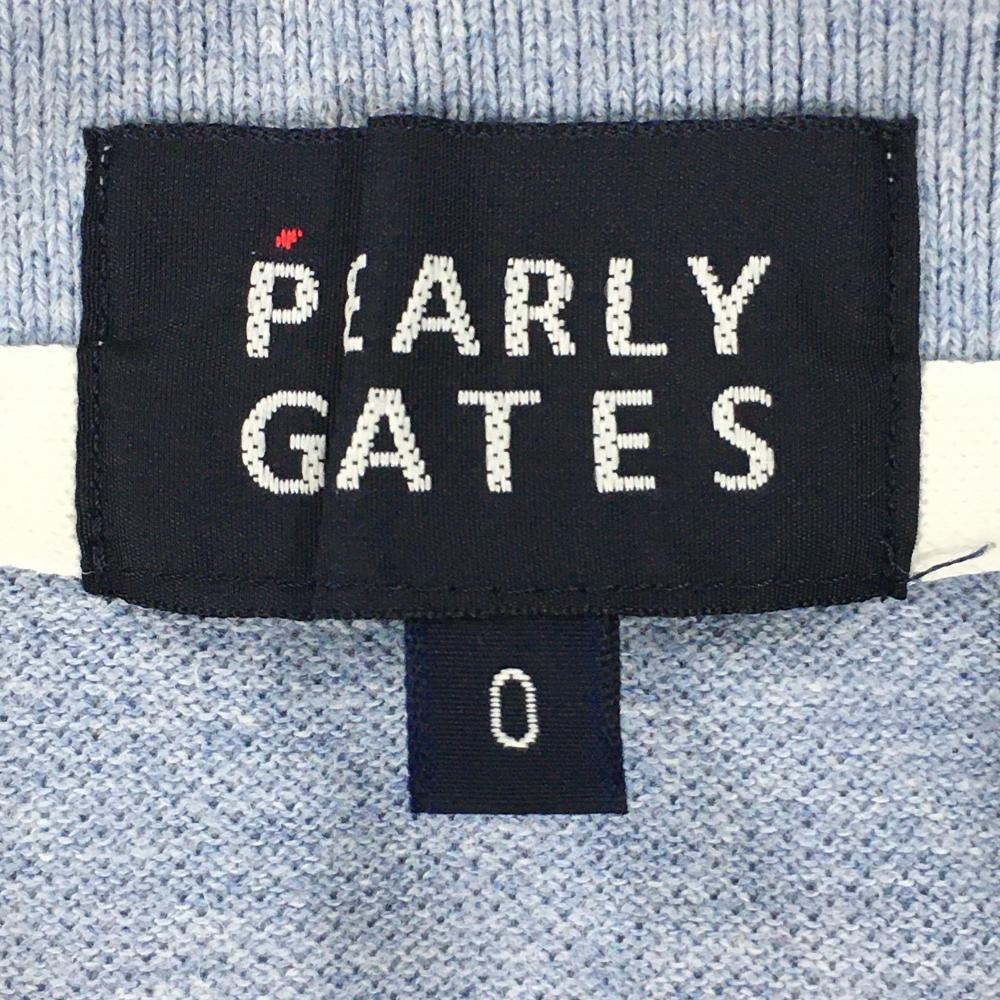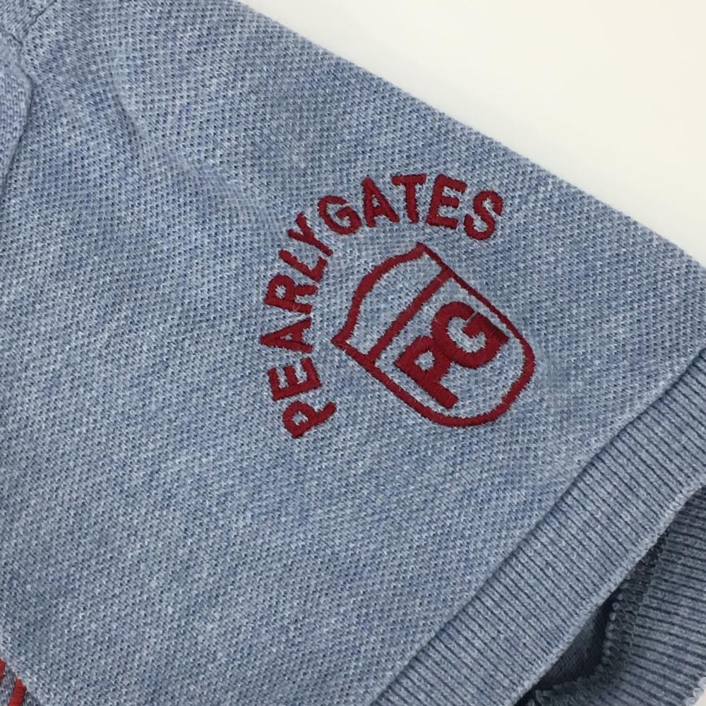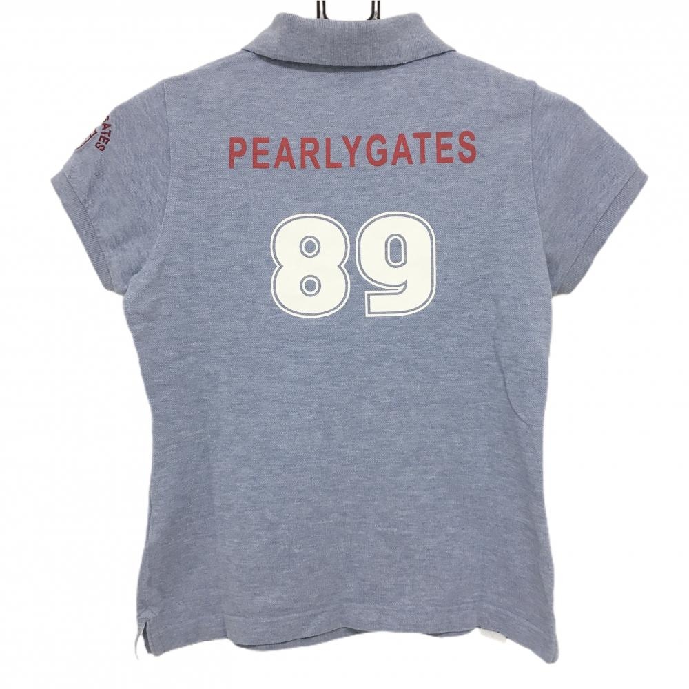 【美品】パーリーゲイツ 半袖ポロシャツ 杢ライトブルー×レッド コットン100% バックロゴ レディース 0(S) ゴルフウェア PEARLY GATES