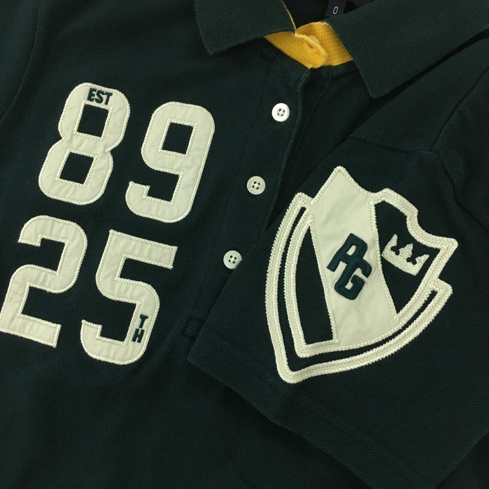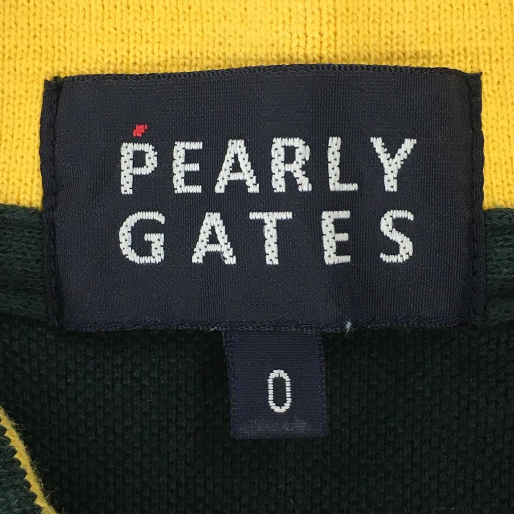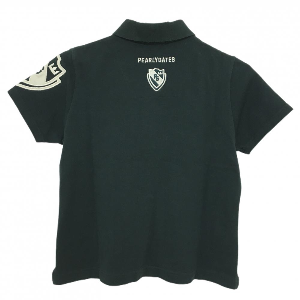 【美品】パーリーゲイツ 半袖ポロシャツ ダークグリーン×白 襟裏バイカラー コットン100% レディース 0(S) ゴルフウェア PEARLY GATES