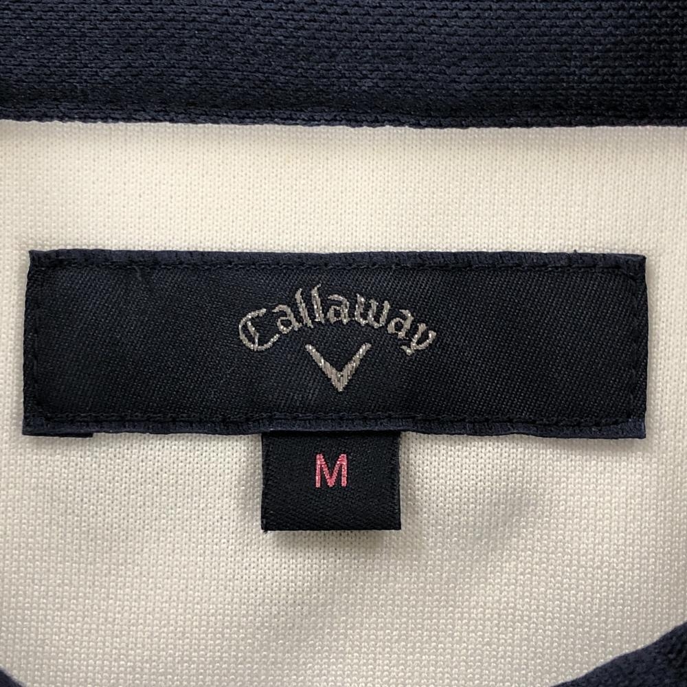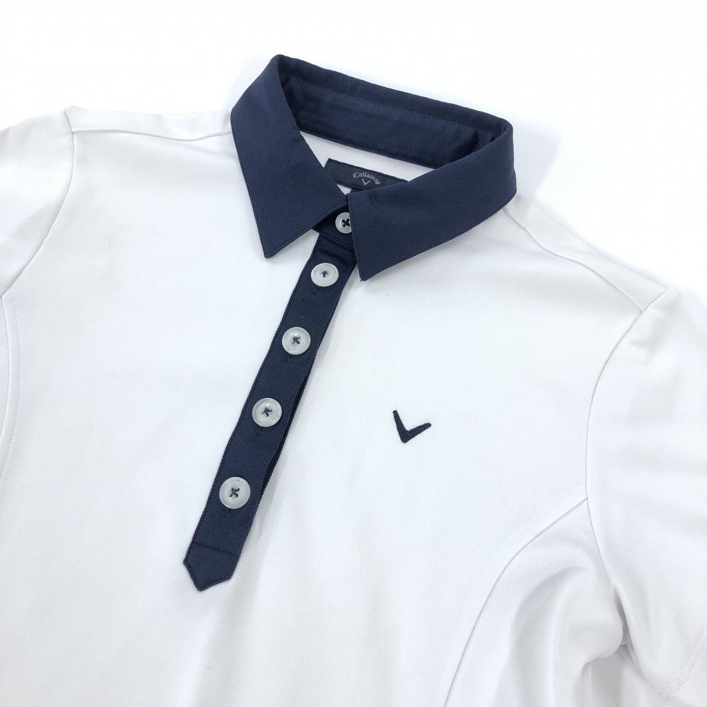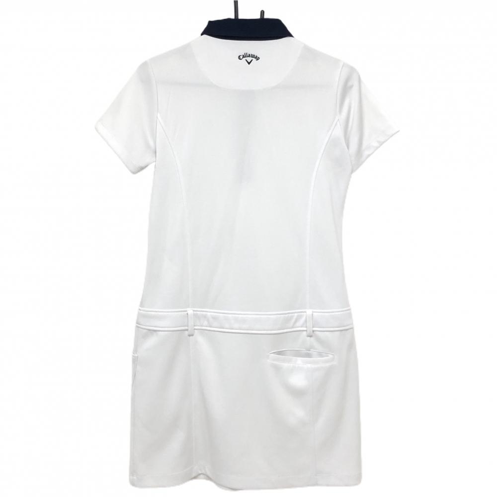キャロウェイ 半袖ポロワンピース 白×ネイビー 胸ロゴ刺しゅう レディース M ゴルフウェア Callaway