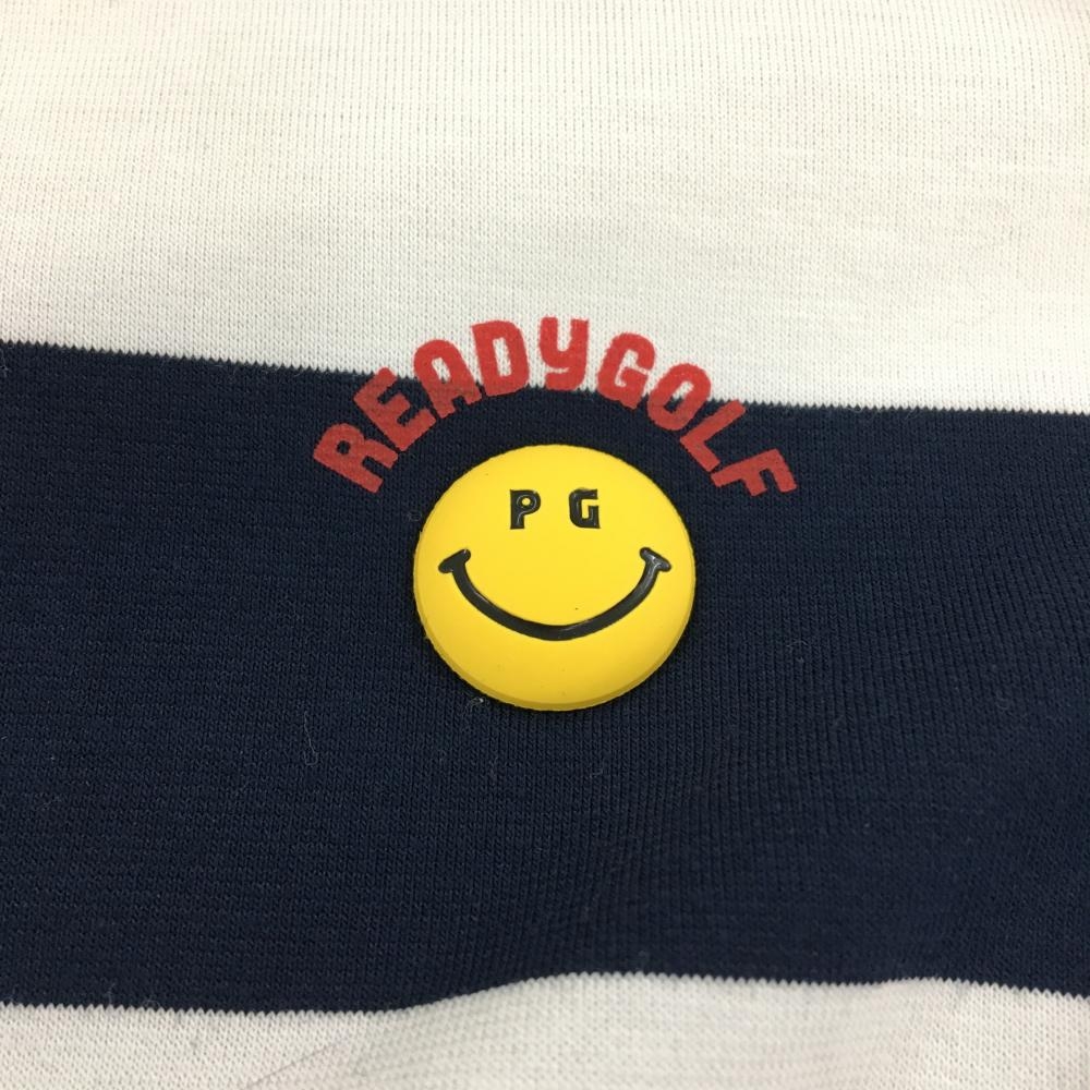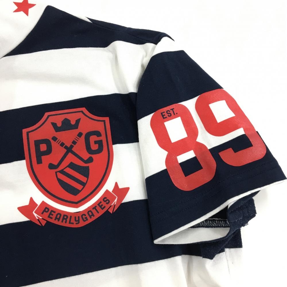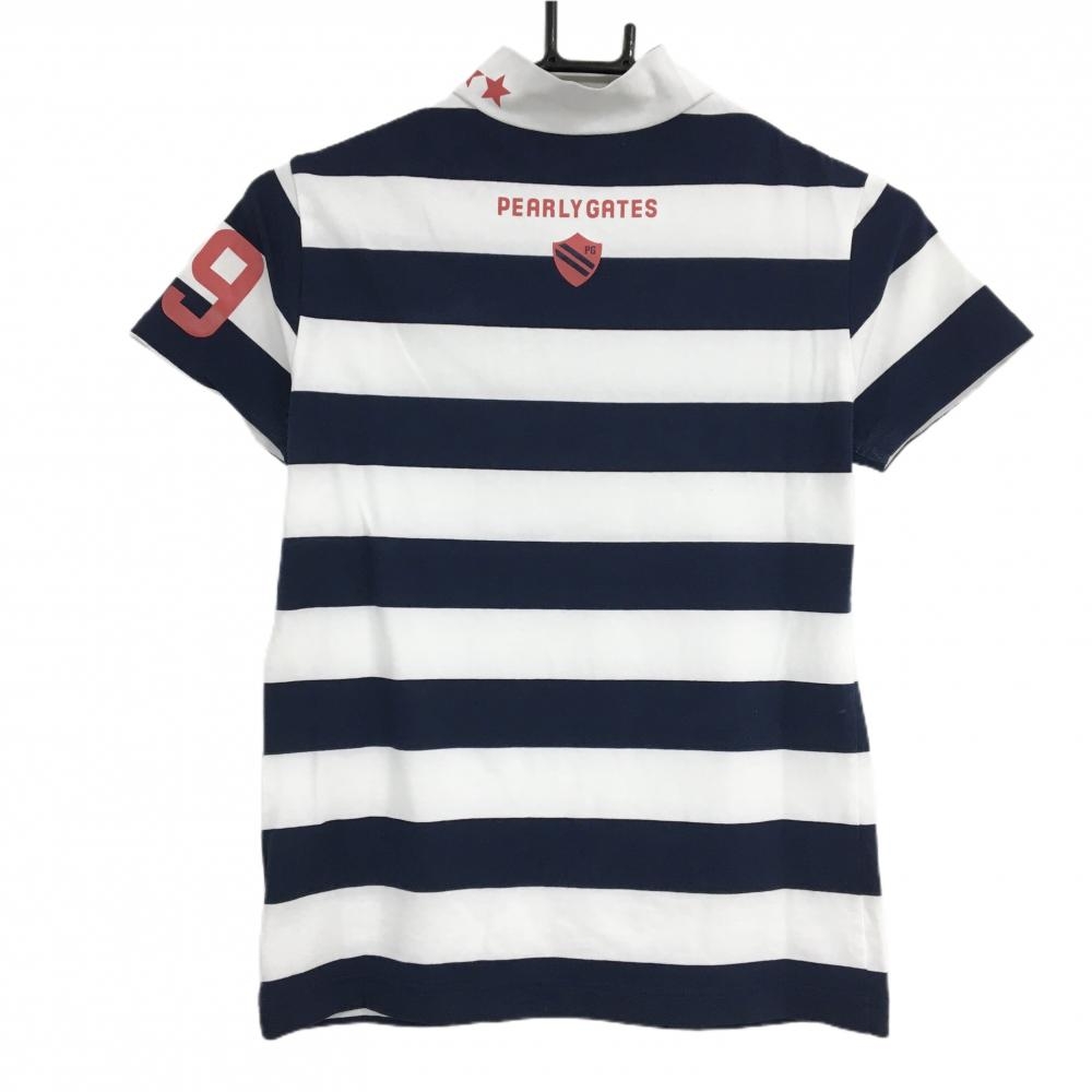 パーリーゲイツ 半袖ハイネックシャツ ネイビー×白 太ボーダー ニコちゃん スマイル レディース 0(S) ゴルフウェア PEARLY GATES