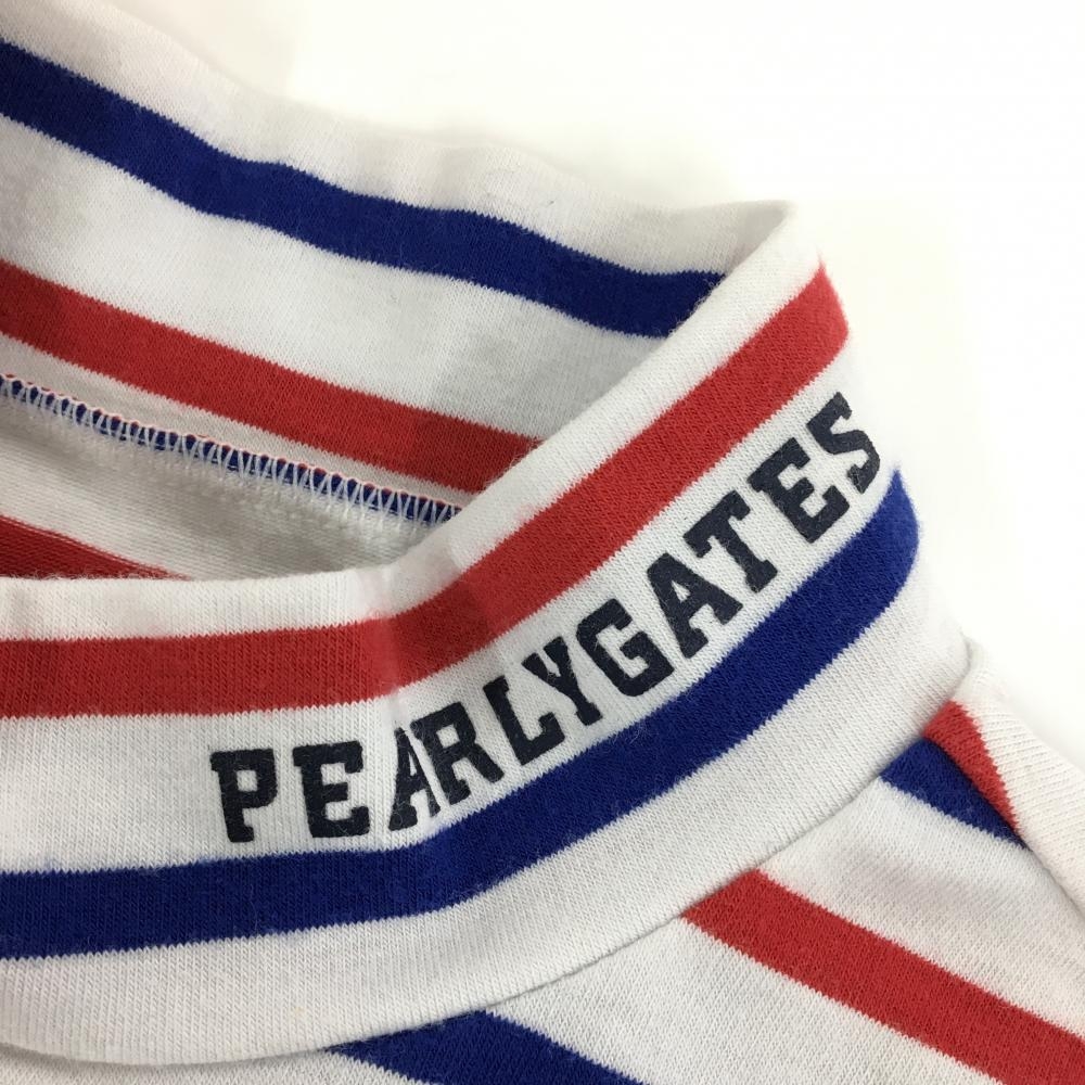 【美品】パーリーゲイツ 半袖ハイネックシャツ 白×レッド×ブルー ボーダー トリコロール レディース 0(S) ゴルフウェア PEARLY GATES