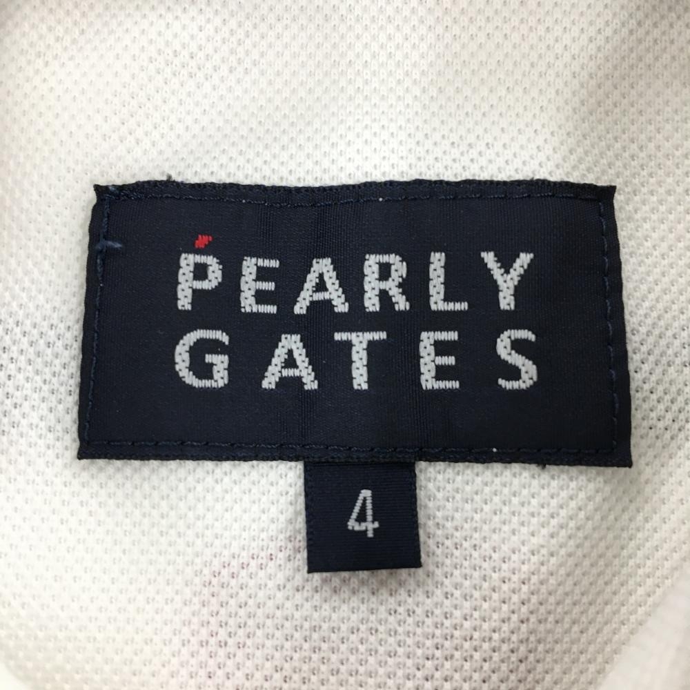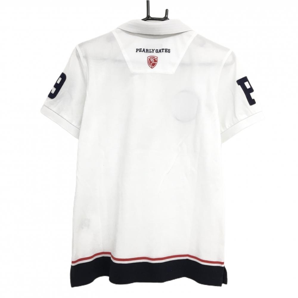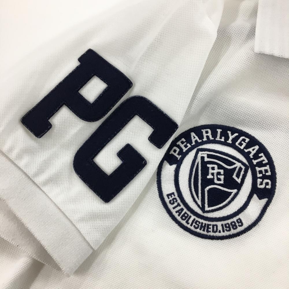 【美品】パーリーゲイツ 半袖ポロシャツ 白×ネイビー 襟裏ボーダー フェルトワッペン メンズ 4(M) ゴルフウェア PEARLY GATES