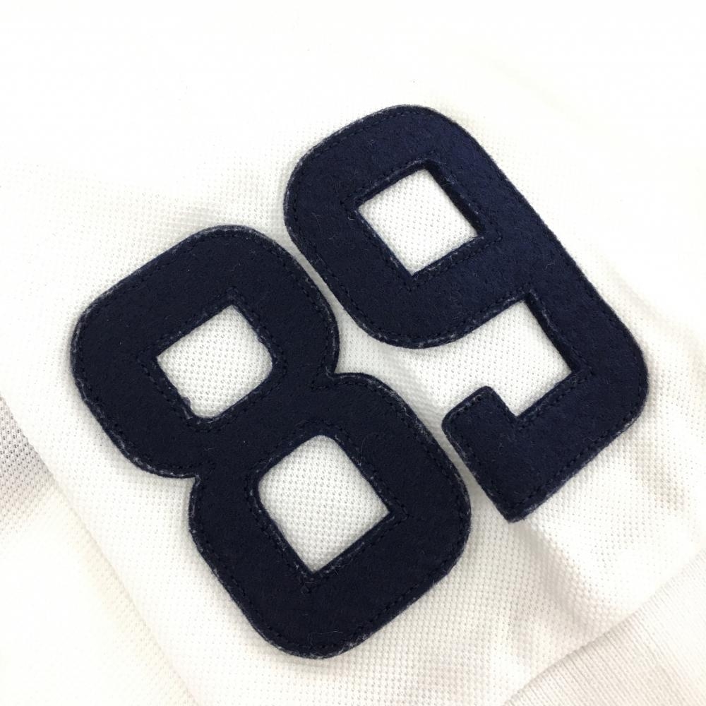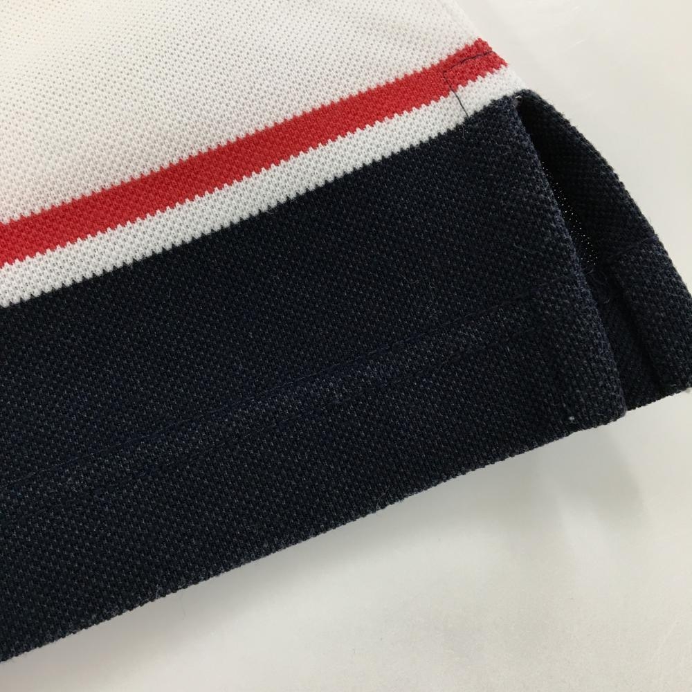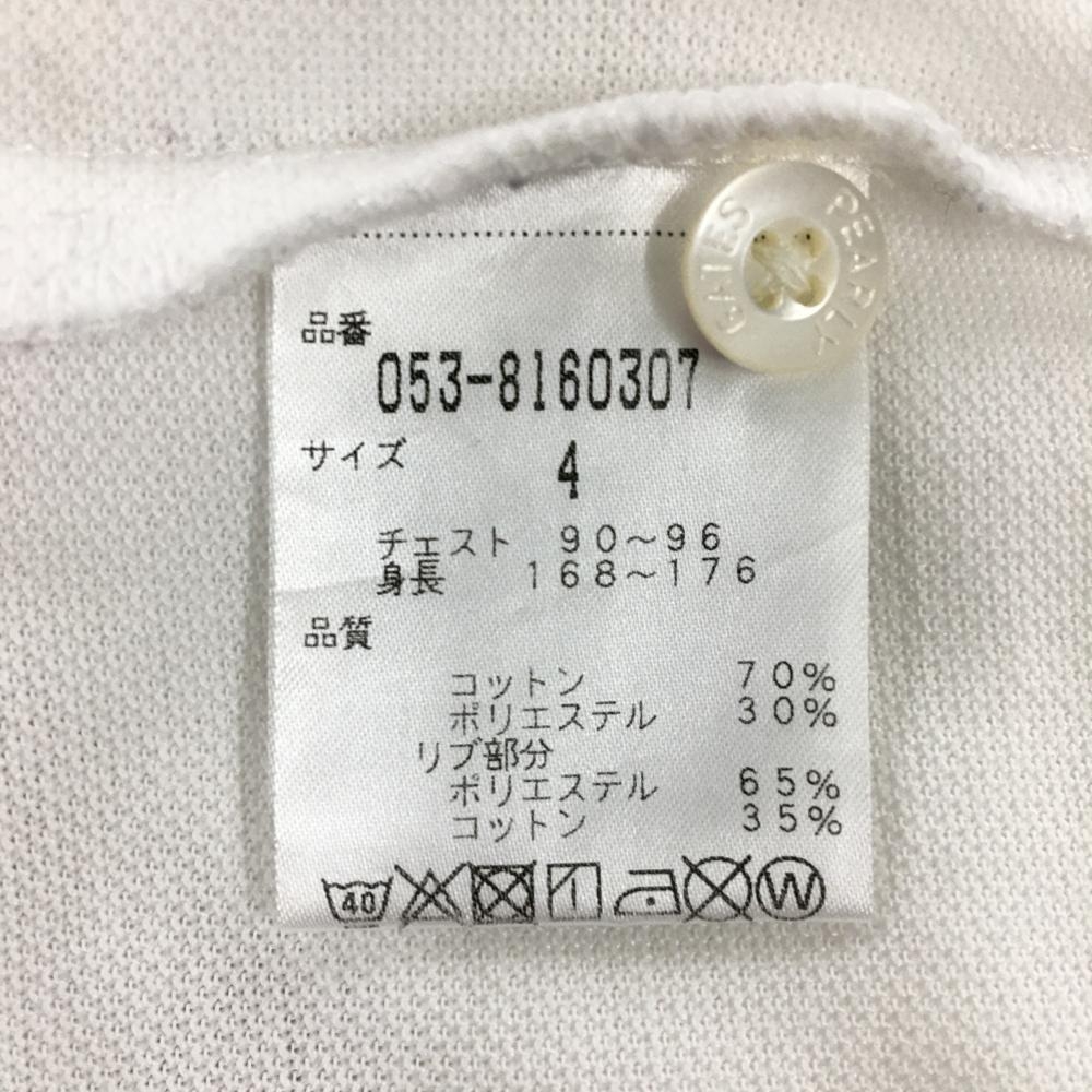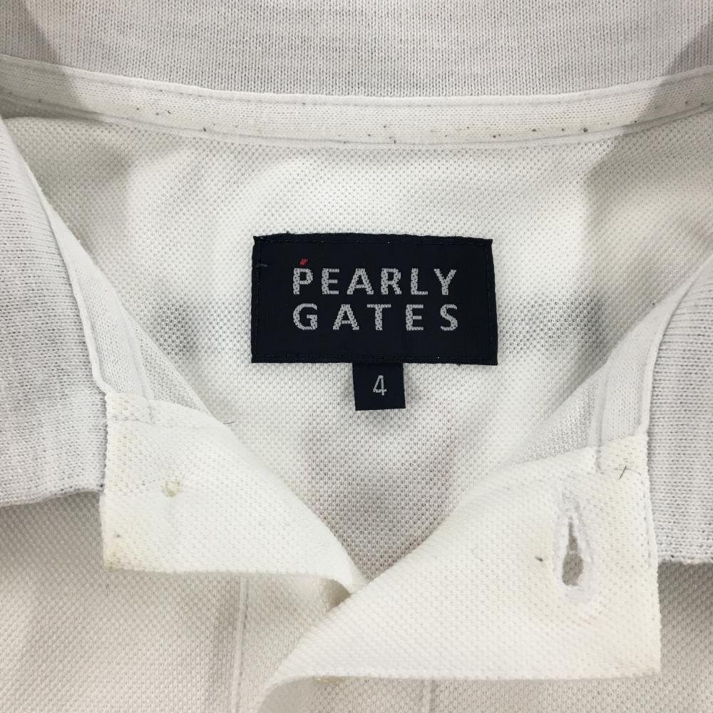 【美品】パーリーゲイツ 半袖ポロシャツ 白×ネイビー 襟裏ボーダー フェルトワッペン メンズ 4(M) ゴルフウェア PEARLY GATES