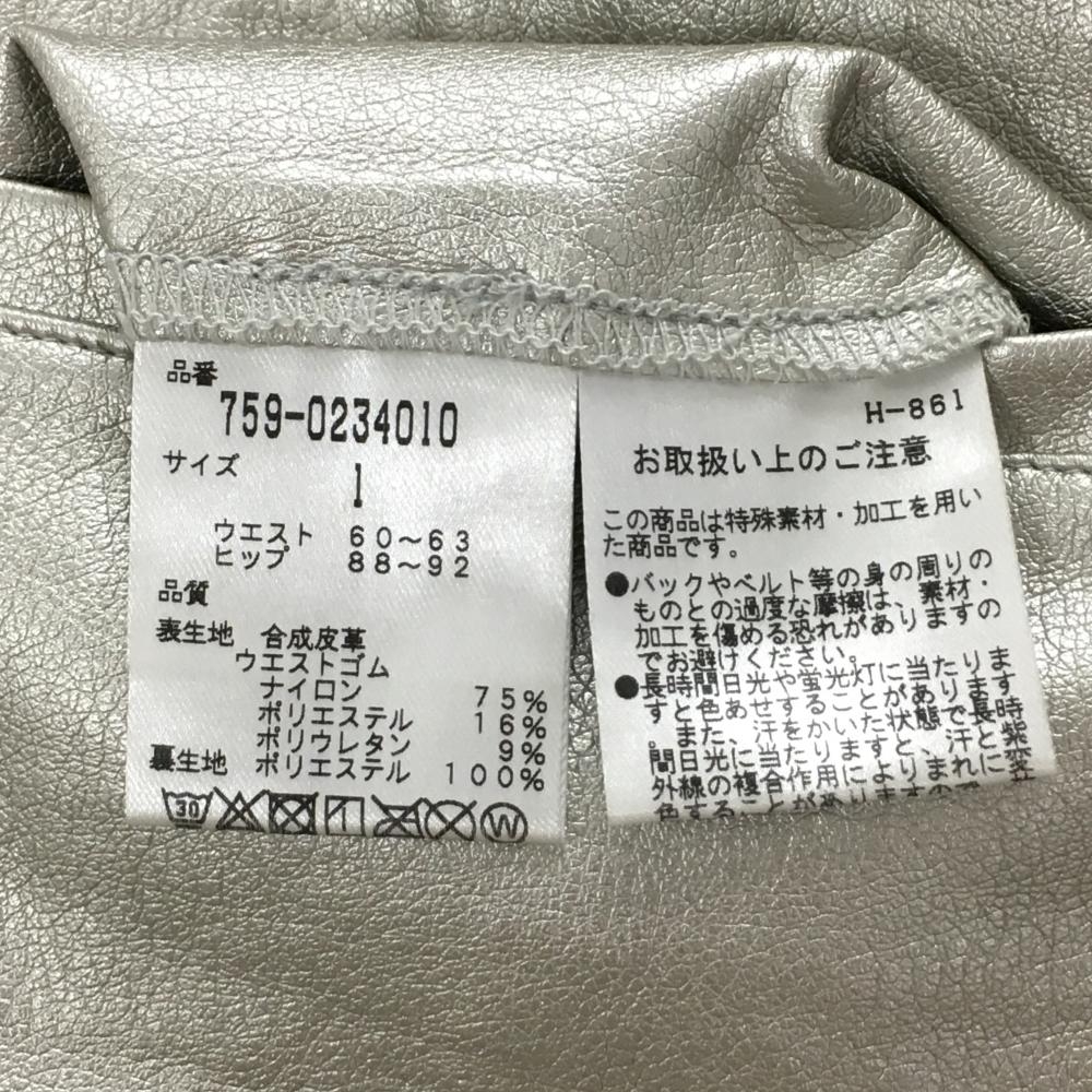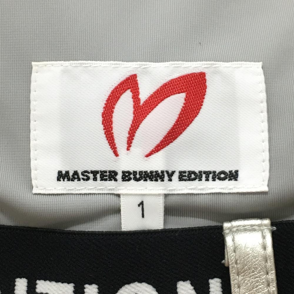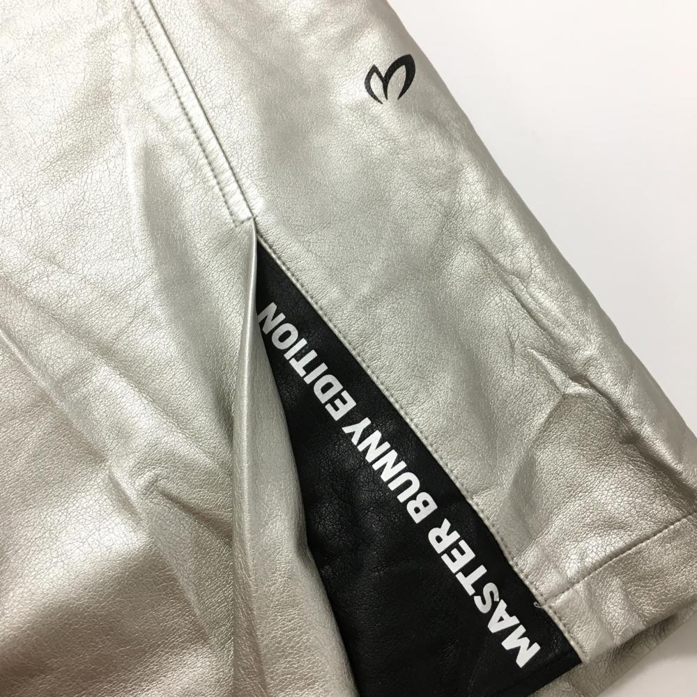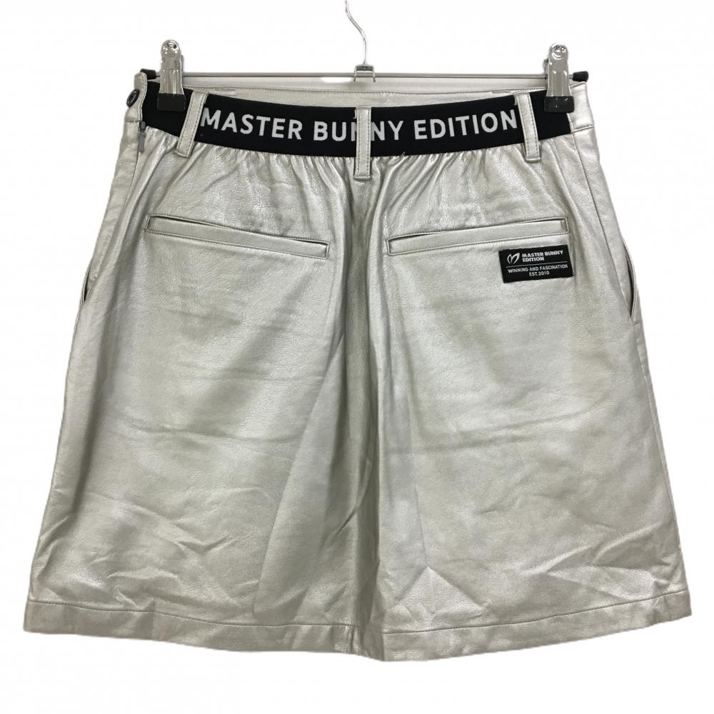 【美品】マスターバニー スカート シルバー×黒 ストレッチ 合成皮革 後ろウエストゴム レディース 1 ゴルフウェア MASTER BUNNY EDITION
